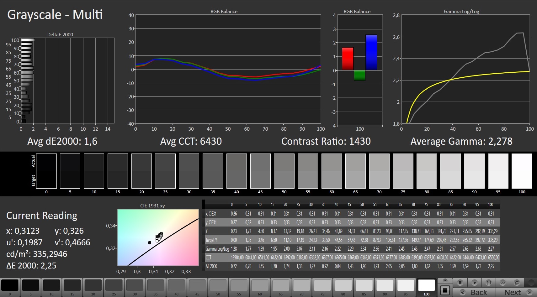 ΔE Greyscale Calman: 1.6 | ∀{0.09-98 Ø5}