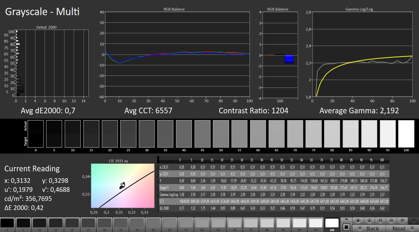 | Delta E Graustufen * | 1.6 | 3.5 -119% | 1.6 -0% | 2.1 -31% | 3.1 -94% |