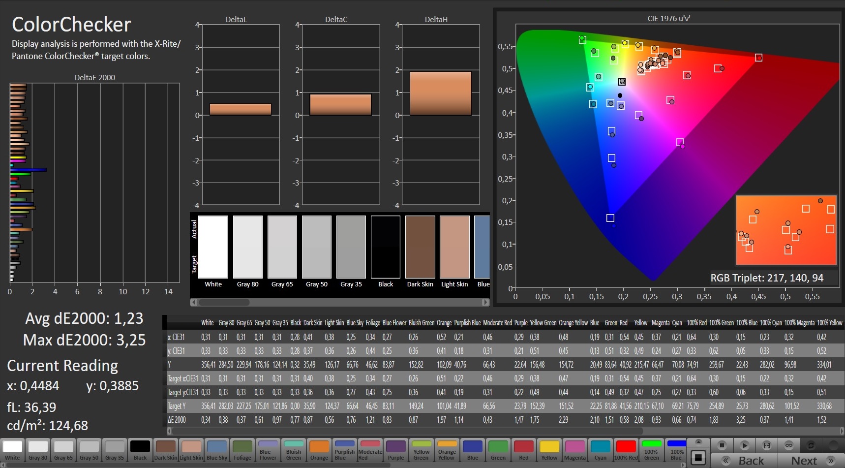 | Colorchecker dE 2000 calibrated * | 1.23 | 0.83 33% | 0.71 42% | 4.66 -279% | 4.54 -269% |