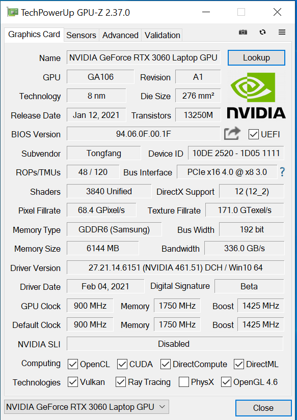 | 82.4 % v7 (old) | 02 / 2021 | Asus TUF Dash F15 FX516PR i7-11370H, GeForce RTX 3070 Laptop GPU | 2 kg | 20 mm | 15.60" | 1920x1080 | |