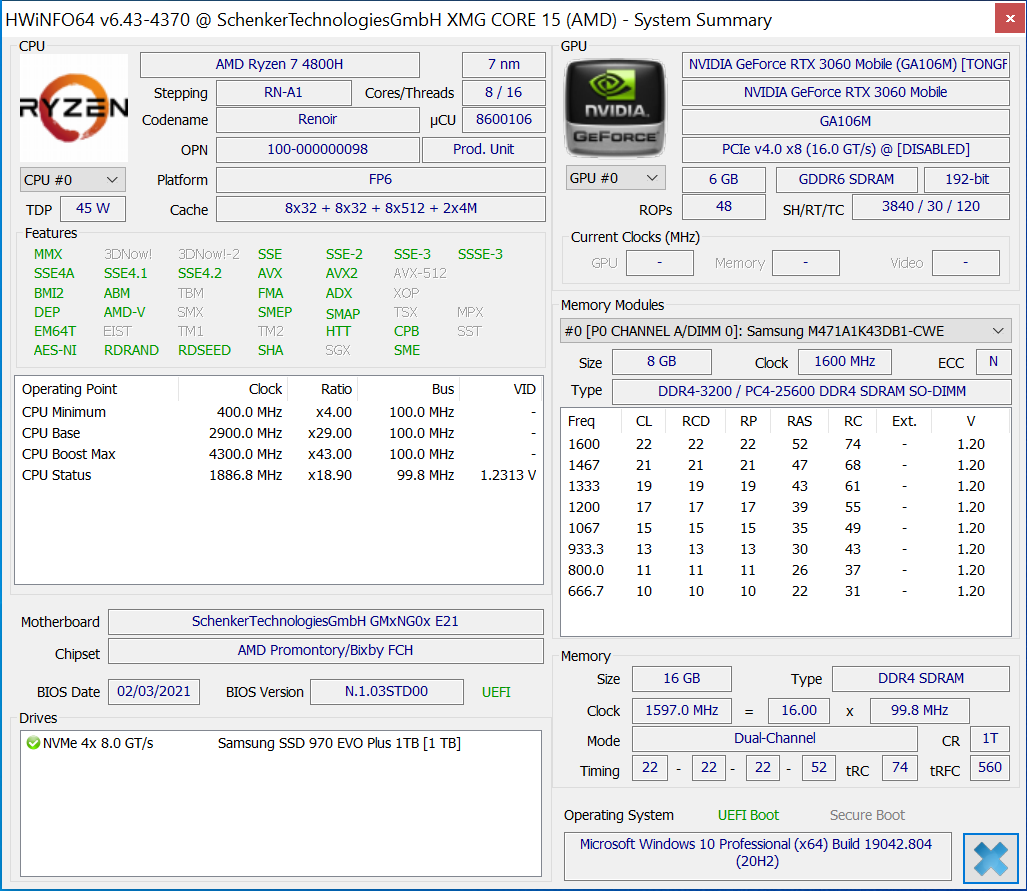 | 84.9 % v7 (old) | 03 / 2021 | Schenker XMG Core 15 Ampere R7 4800H, GeForce RTX 3060 Laptop GPU | 2 kg | 22.9 mm | 15.60" | 2560x1440 | |