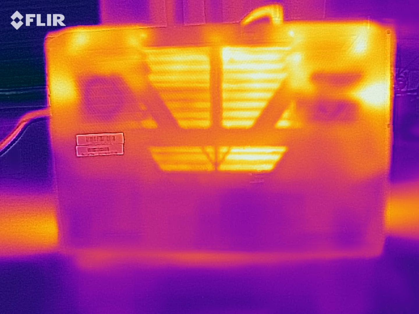 (-) Auf der Unterseite messen wir eine maximalen Wert von 50 °C (im Vergleich zum Durchschnitt von 43.3 °C).