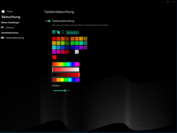Schon im Auslieferungszustand zeigt der Bildschirm eine gute Farbdarstellung. Mit einer Farbabweichung von knapp 1,7 wird das Soll (Delta-E kleiner 3) erfüllt. Unter einem Blaustich leidet das Display nicht. Mittels einer Kalibrierung werden geringfügige Verbesserungen erreicht: Die Farbabweichung sinkt auf 1,23 und die Graustufen werden ausgewogener dargestellt. Die Farbräume AdobeRGB (71 %) und sRGB (94 %) werden nicht vollständig abgebildet.