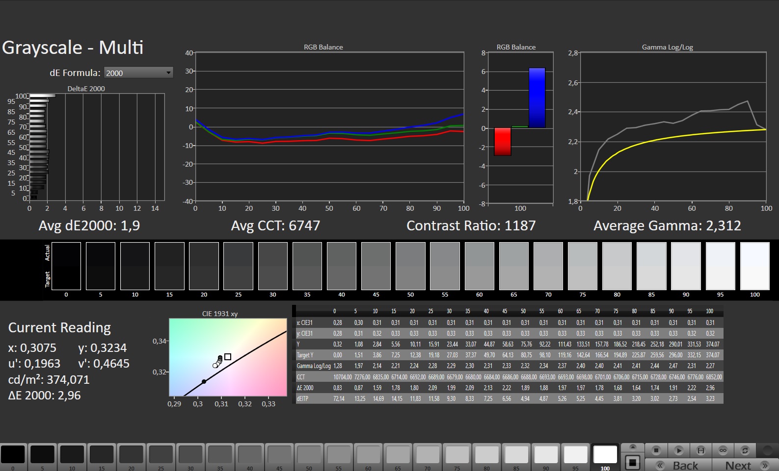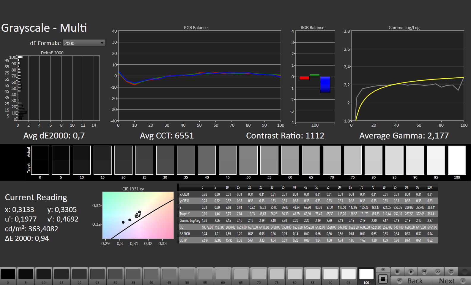 ΔE Greyscale Calman: 1.9 | ∀{0.09-98 Ø5}