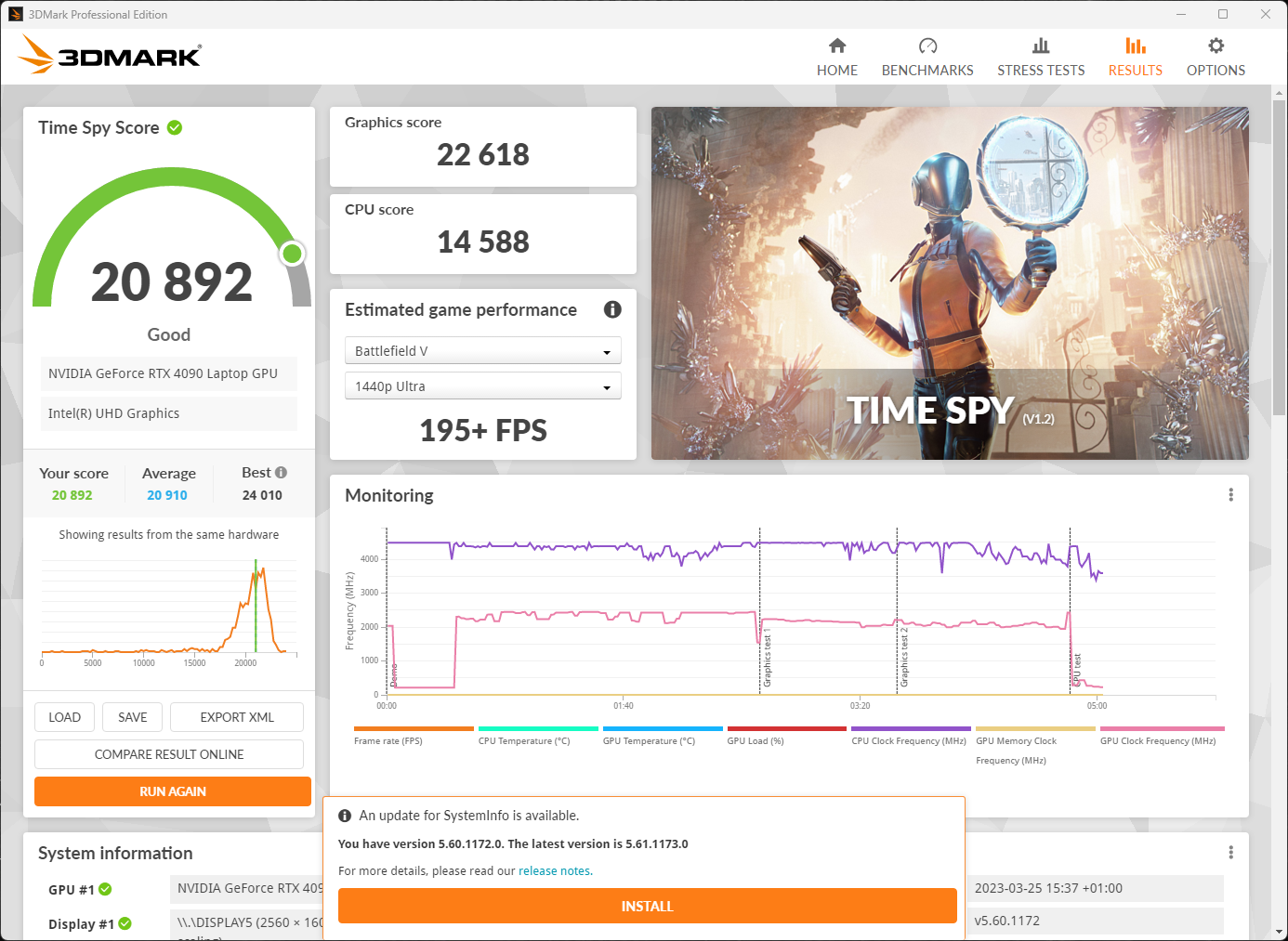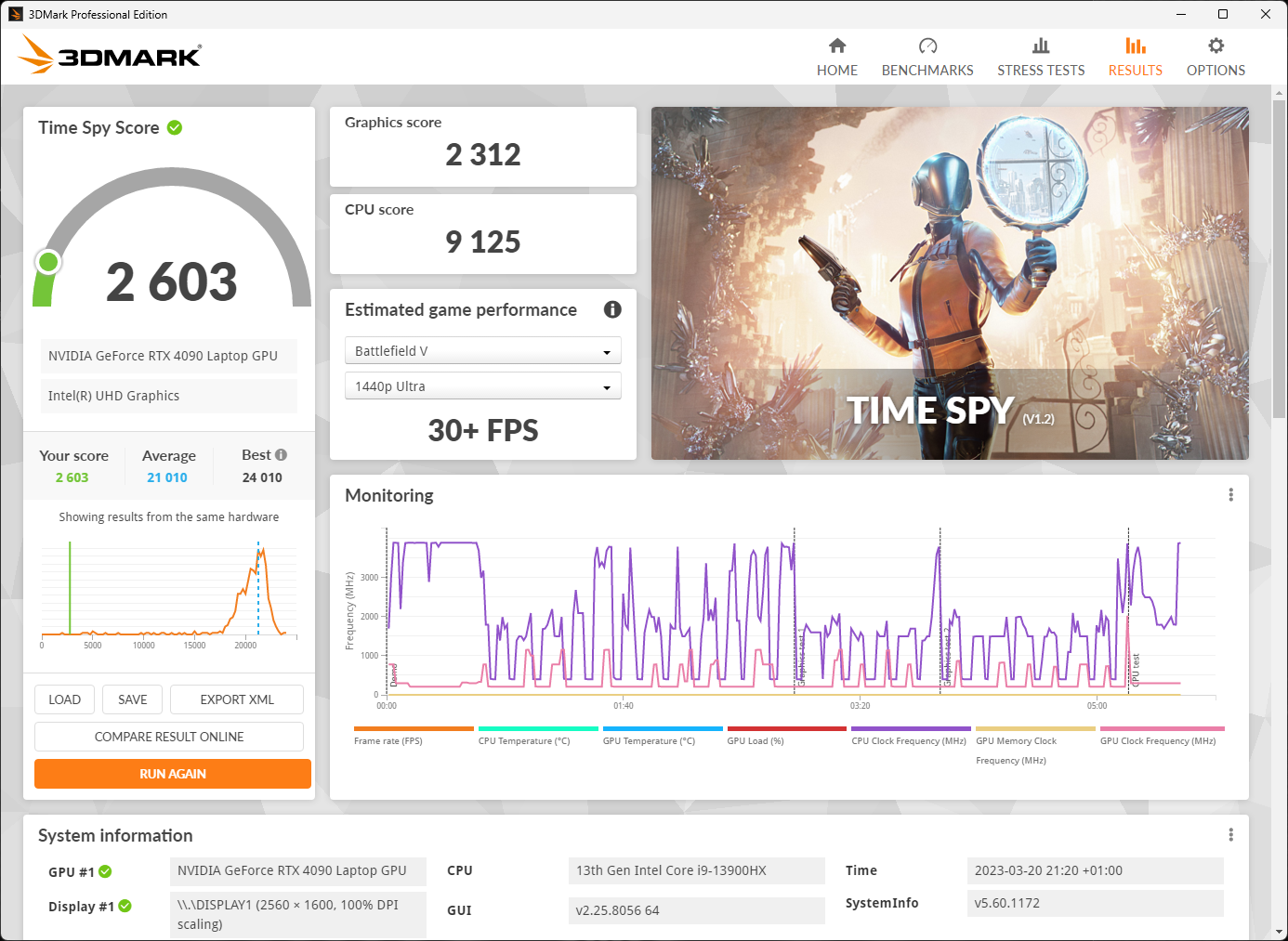 | 88.4 % v7 (old) | 03 / 2023 | Medion Erazer Beast X40 i9-13900HX, GeForce RTX 4090 Laptop GPU | 2.9 kg | 33 mm | 17.00" | 2560x1600 | |