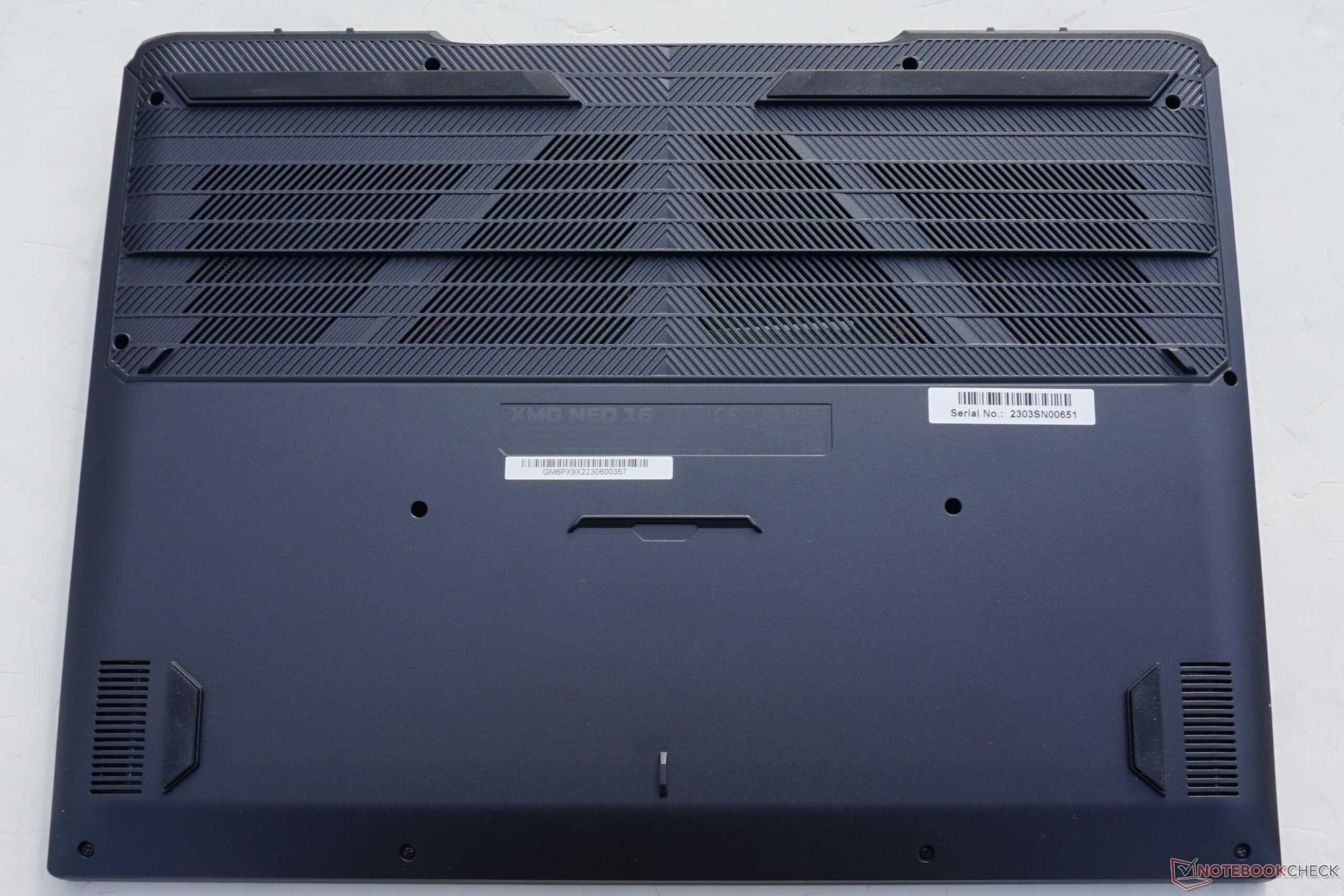 Wäre nicht der sich schwach abzeichnende "XMG"-Schriftzug in den Deckel eingeprägt, ginge die Gestaltung des Gehäuses als komplett unauffällig durch. Lediglich die großen Lüftungsschlitze seitlich und hinten verraten, dass hier mehr Leistung verbaut ist.