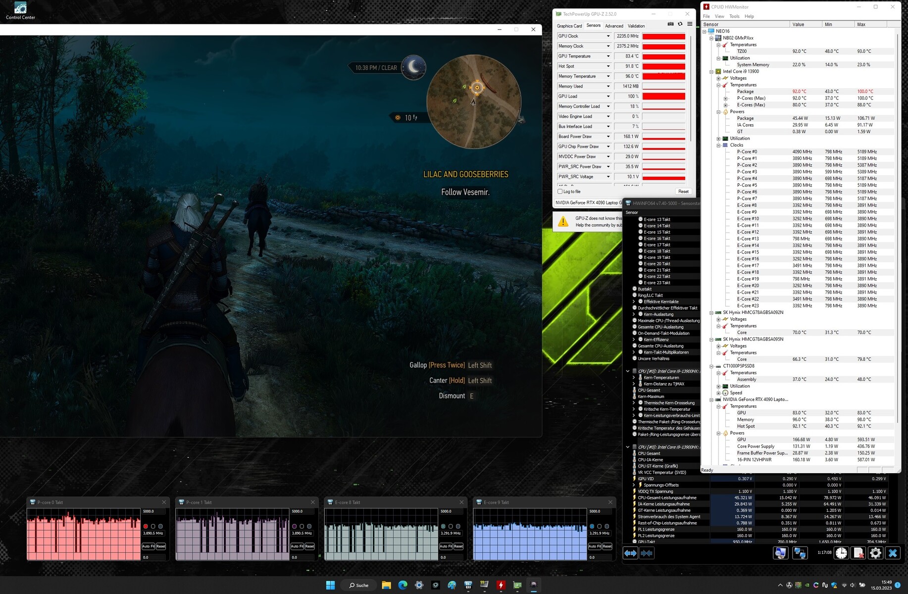 Abseits der überragenden Bildraten in allen von uns getesteten Spielen verlangt der Laptop jedoch ein paar Kompromisse ab, wenn auch auf gehobenem Niveau. Das Display liegt bei Farbdarstellung, Kontrast und Helligkeit nur im Durchschnitt, bietet aber immerhin 240 Hertz Bildrate. Wobei mit Blick auf die Rechenleistung zumindest theoretisch auch eine höhere Bildwiederholfrequenz möglich gewesen wäre.