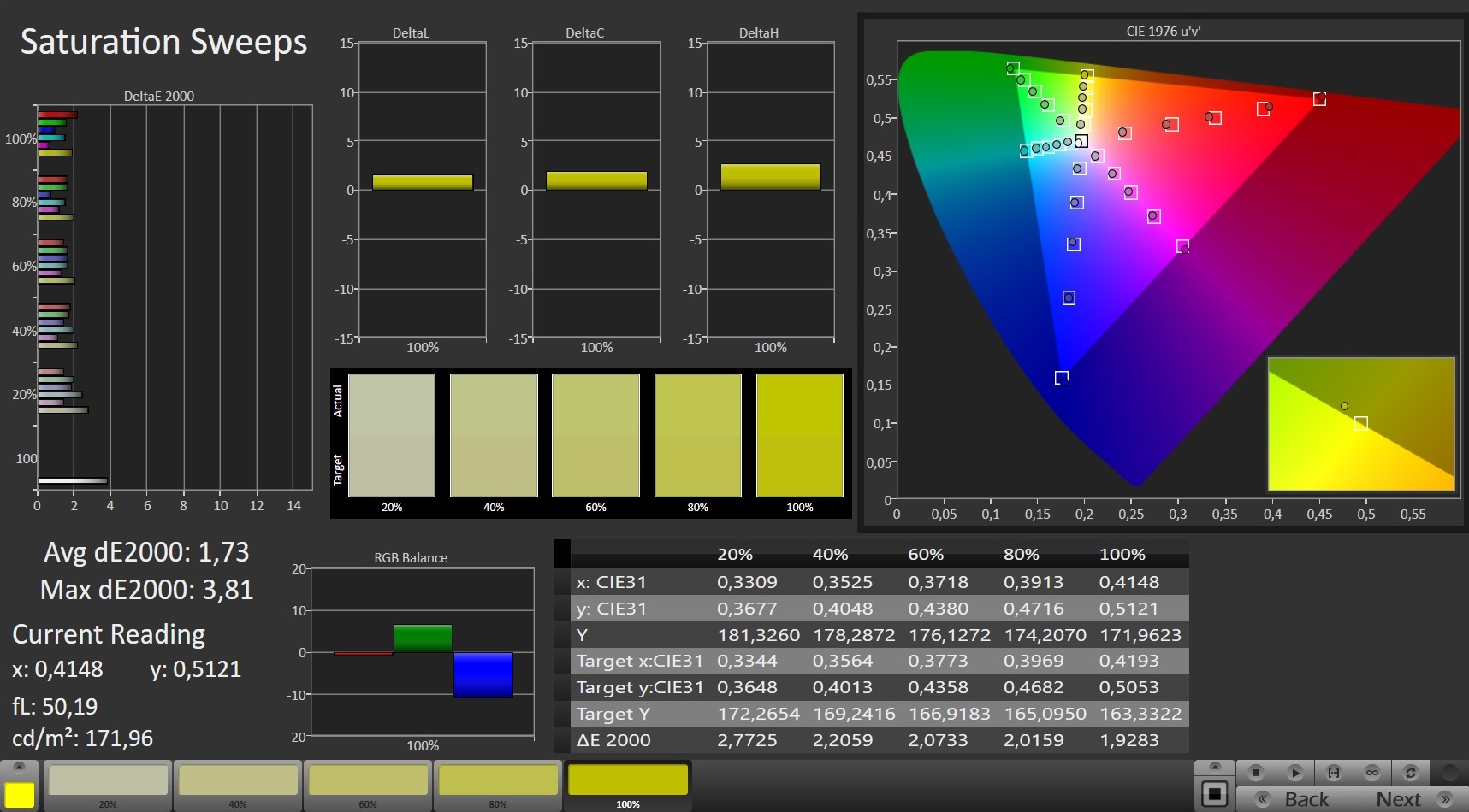 Kontrast und Schwarzwert gehören mit zu den besten der Klasse, zudem ist der Bildschirm ab Werk gut eingestellt, die Farbabweichungen lassen sich aber manuell auf einen noch niedrigeren Wert optimieren. Insgesamt sind die Werte des Bildschirms sehr gut und stecken manchen Konkurrenten in die Tasche.
