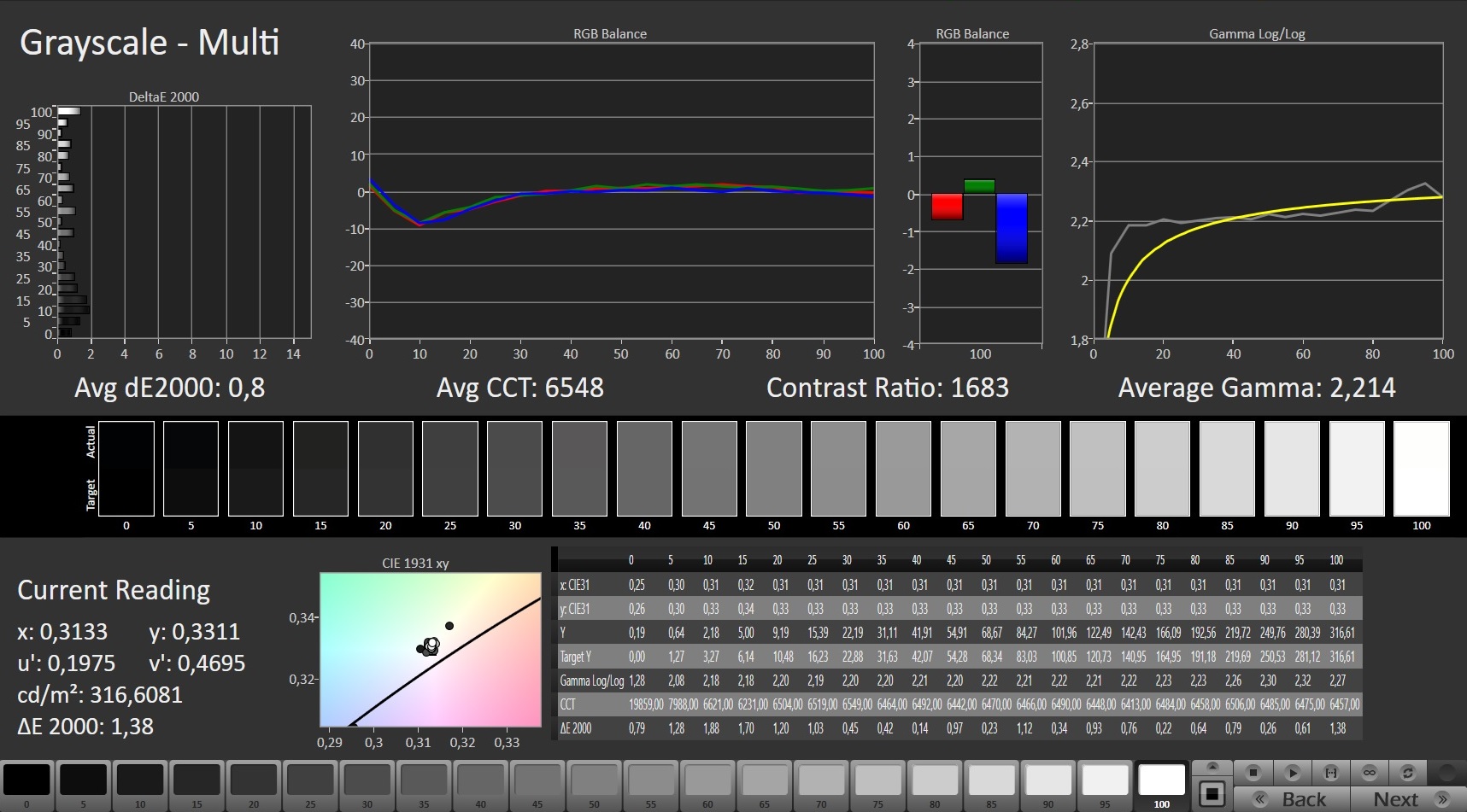 ΔE Greyscale Calman: 2.6 | ∀{0.09-98 Ø5}