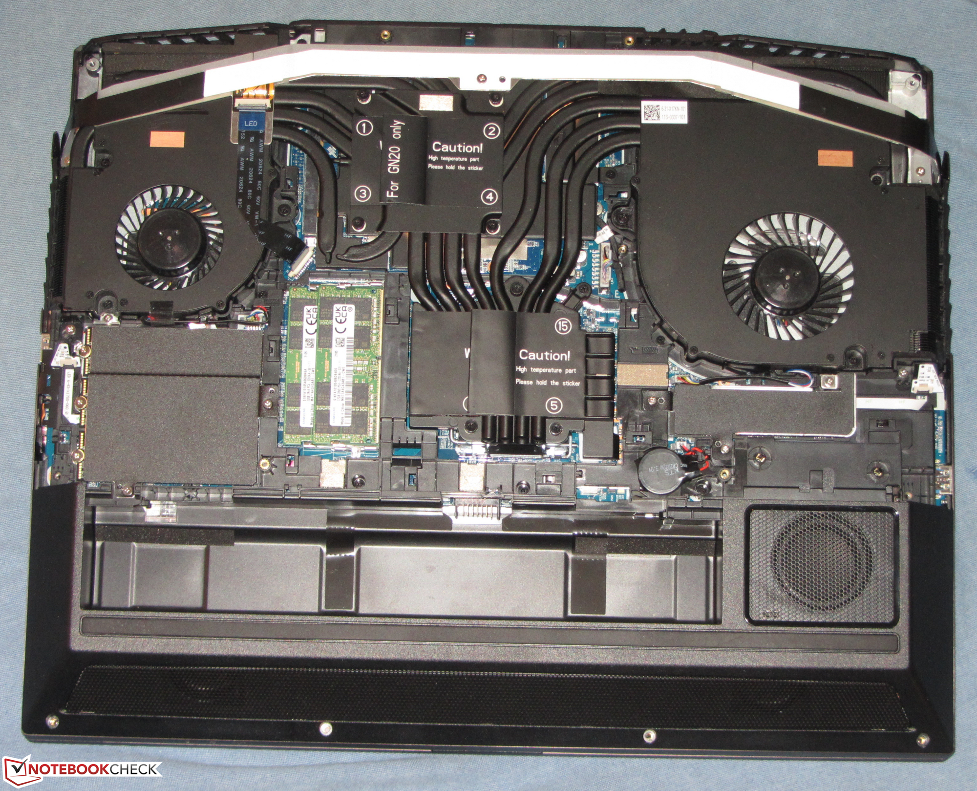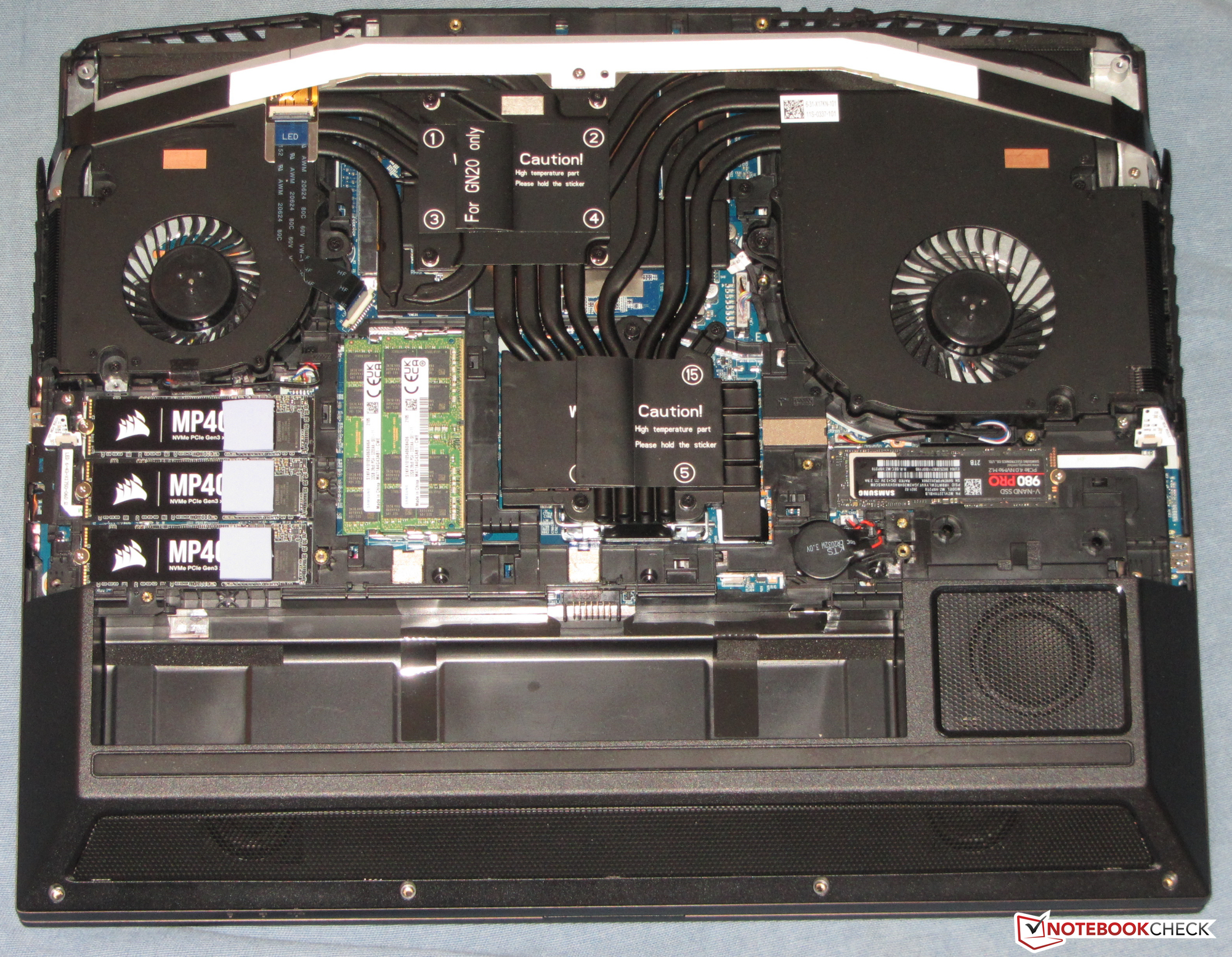 Im Leerlauf registrieren wir eine maximale Leistungsaufnahme von 69 Watt - ein Wert, den viele Office-Notebooks unter Volllast nicht erreichen. Hier macht sich die Kombination aus Hochleistungs-CPU und permanent aktiver GeForce-GPU bemerkbar. Stresstest bzw. Witcher-3-Test lassen den Bedarf auf bis zu 368 Watt bzw. durchschnittlich 297 Watt ansteigen. Die zwei Netzteile liefern eine Nennleistung von jeweils 280 Watt.