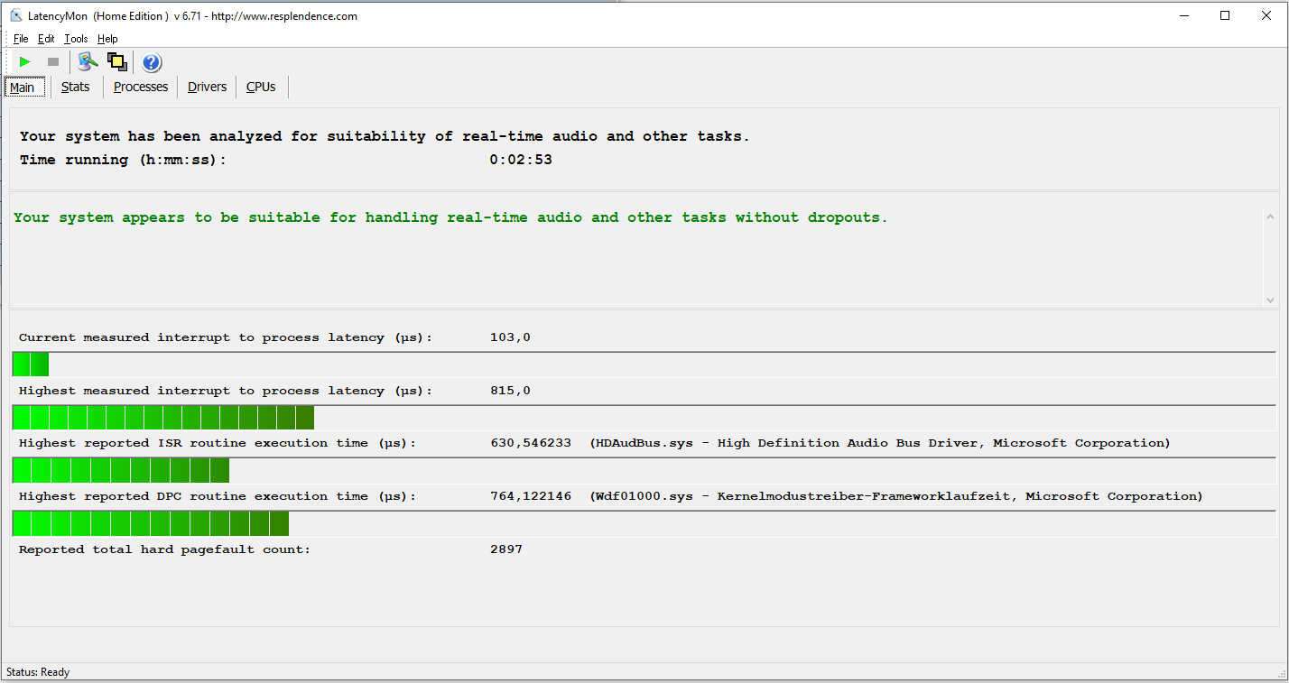 | DPC Latencies / LatencyMon - interrupt to process latency (max), Web, Youtube, Prime95 | |