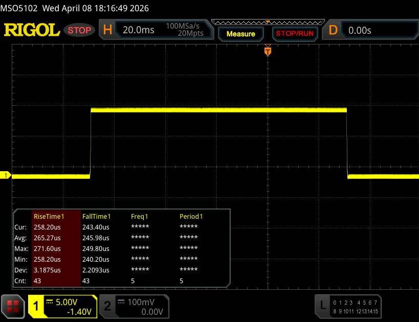 | 0.5 ms ... steigend ↗ und fallend ↘ kombiniert | ↗ 0.3 ms steigend | |