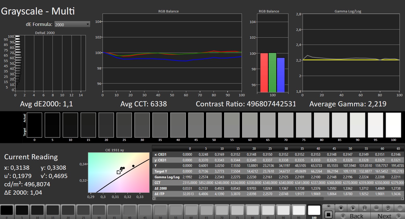 ΔE Greyscale Calman: 1.1 | ∀{0.09-98 Ø4.99}