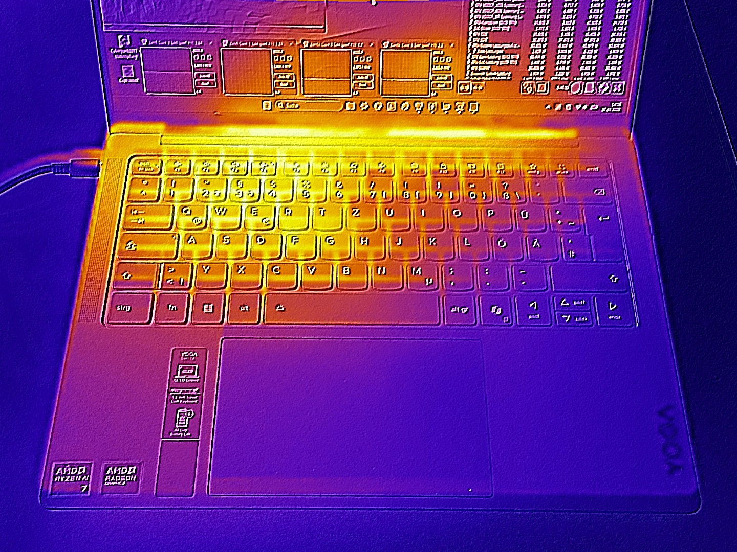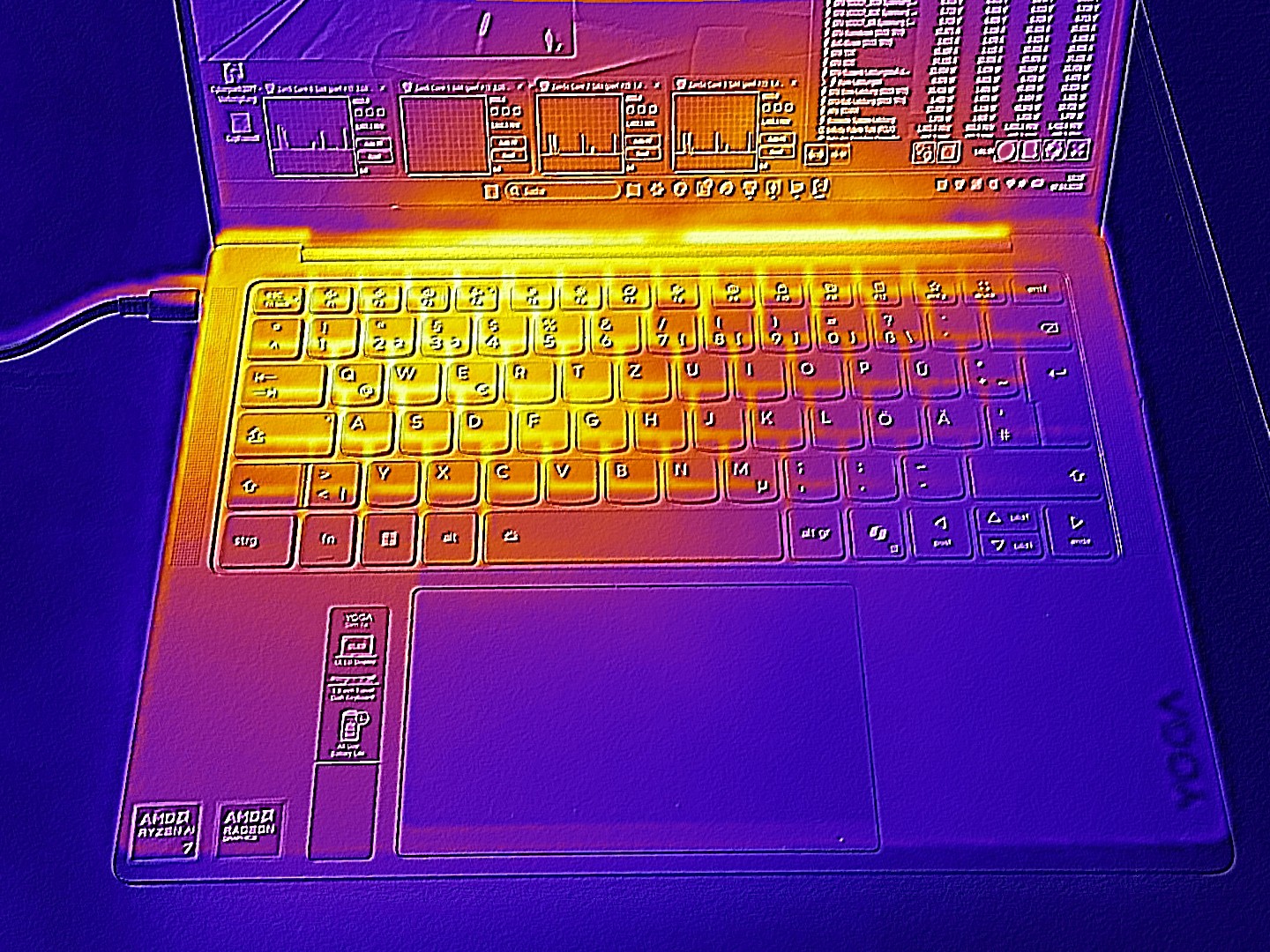(+) Die Handballen und der Touchpad-Bereich erreichen maximal 34 °C und damit die typische Hauttemperatur und fühlen sich daher nicht heiß an.