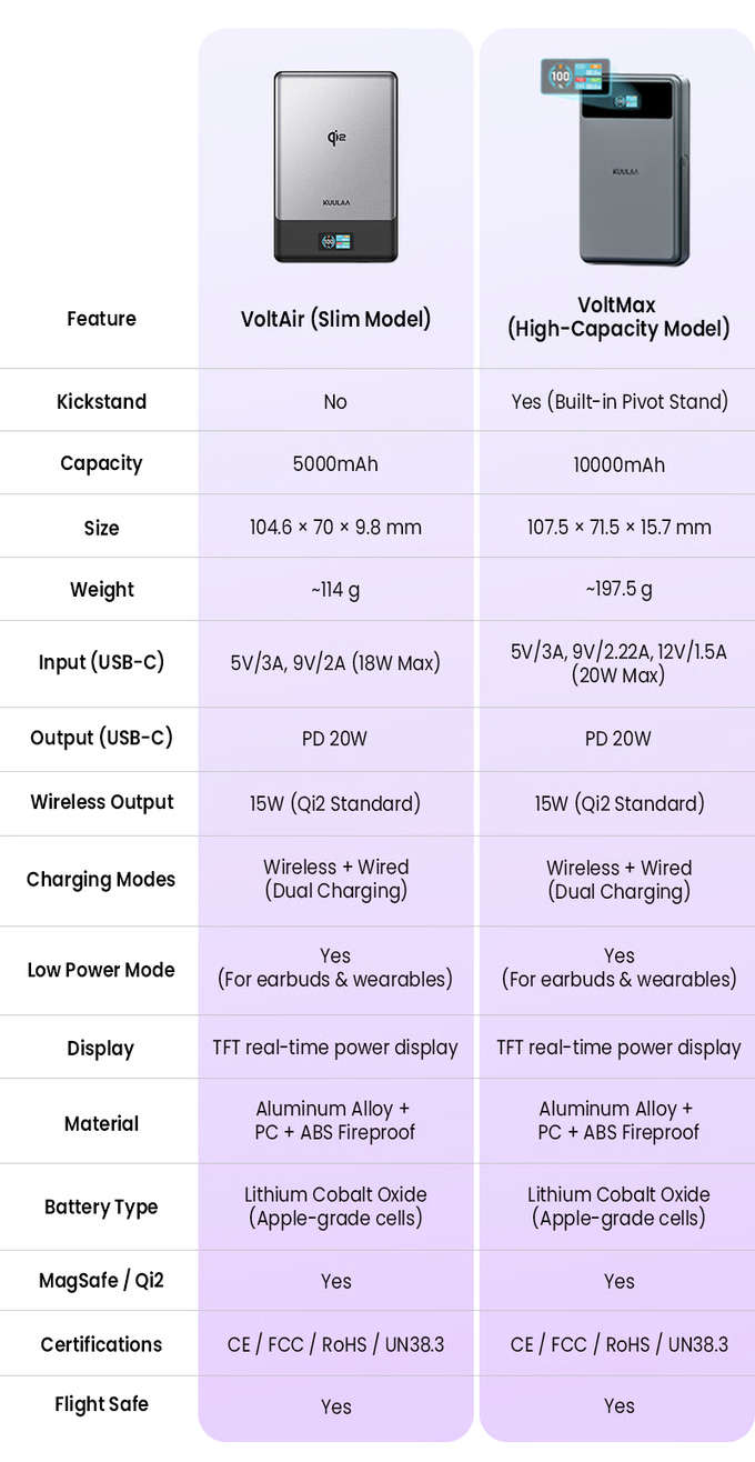 Qi2-Powerbanks gibt es bereits einige. Mit der VoltAir und VoltMax stehen zwei weitere Modelle in den Startlöchern. Die VoltAir ist nach Angaben des Herstellers die "schlankste Powerbank mit TFT-Display und Zellen in Apple-Qualität".