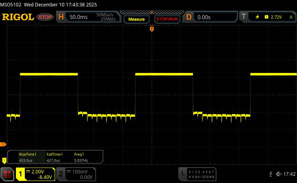 Poco gibt wie beim F8 Pro in den Spezifikationen DC-Dimming zur Helligkeitssteuerung an. Unter dem Oszilloskop entpuppt es sich jedoch eher als ein hochfrequentes PWM-Dimming mit einer niedrigen Grundfrequenz. Das Display ist also vergleichsweise augenschonend, jedoch nicht flackerfrei.
