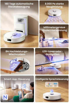 Für die Navigation und Hindernisvermeidung setzt der Narwal Freo S auf die übliche LDS-LiDAR-Technologie, mit der zunächst eine virtuelle Karte der Umgebung angelegt und diese dann systematisch abgefahren wird. Auch die mehrstöckige Kartenerstellung wird unterstützt, sodass der Saug- und Wischroboter mehrere Etagen reinigen kann.