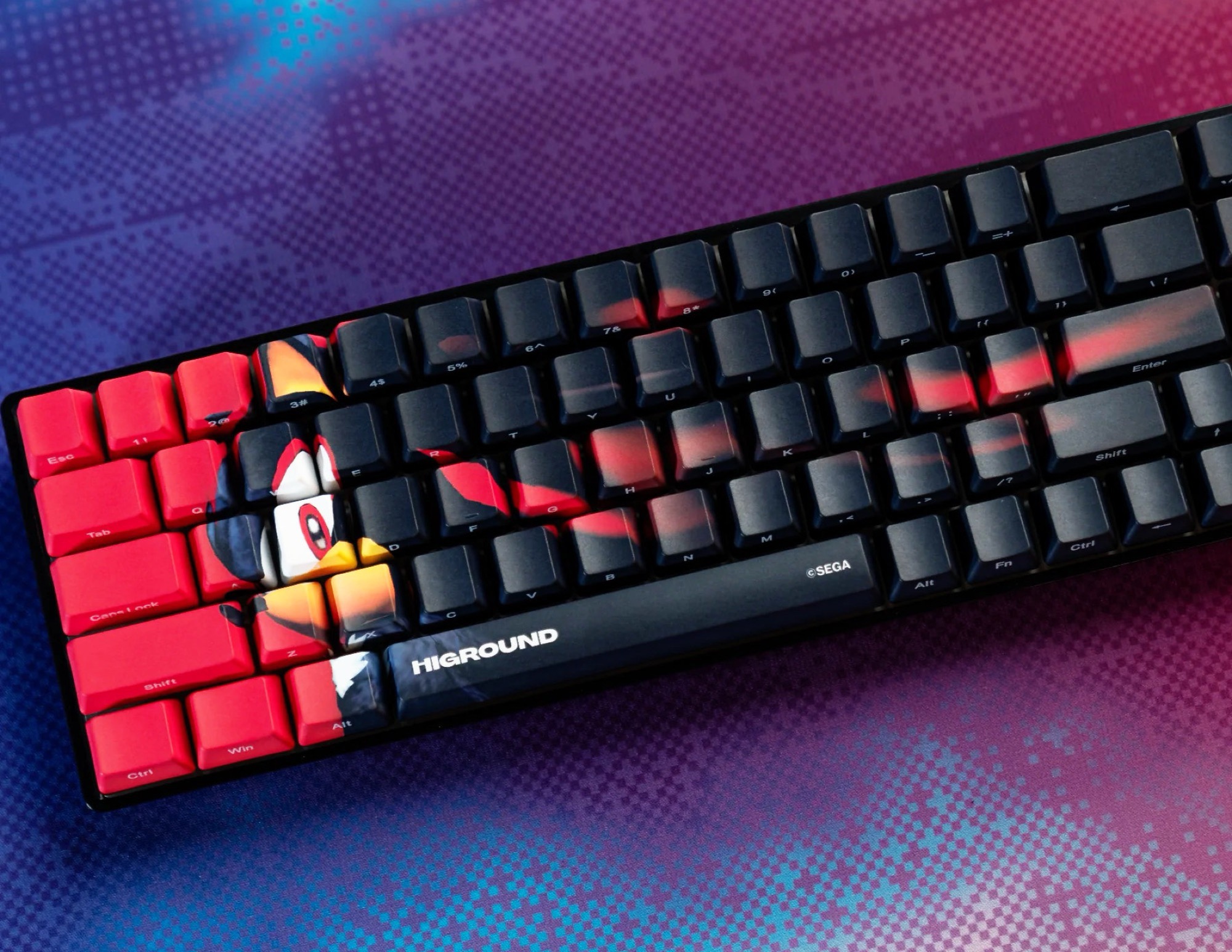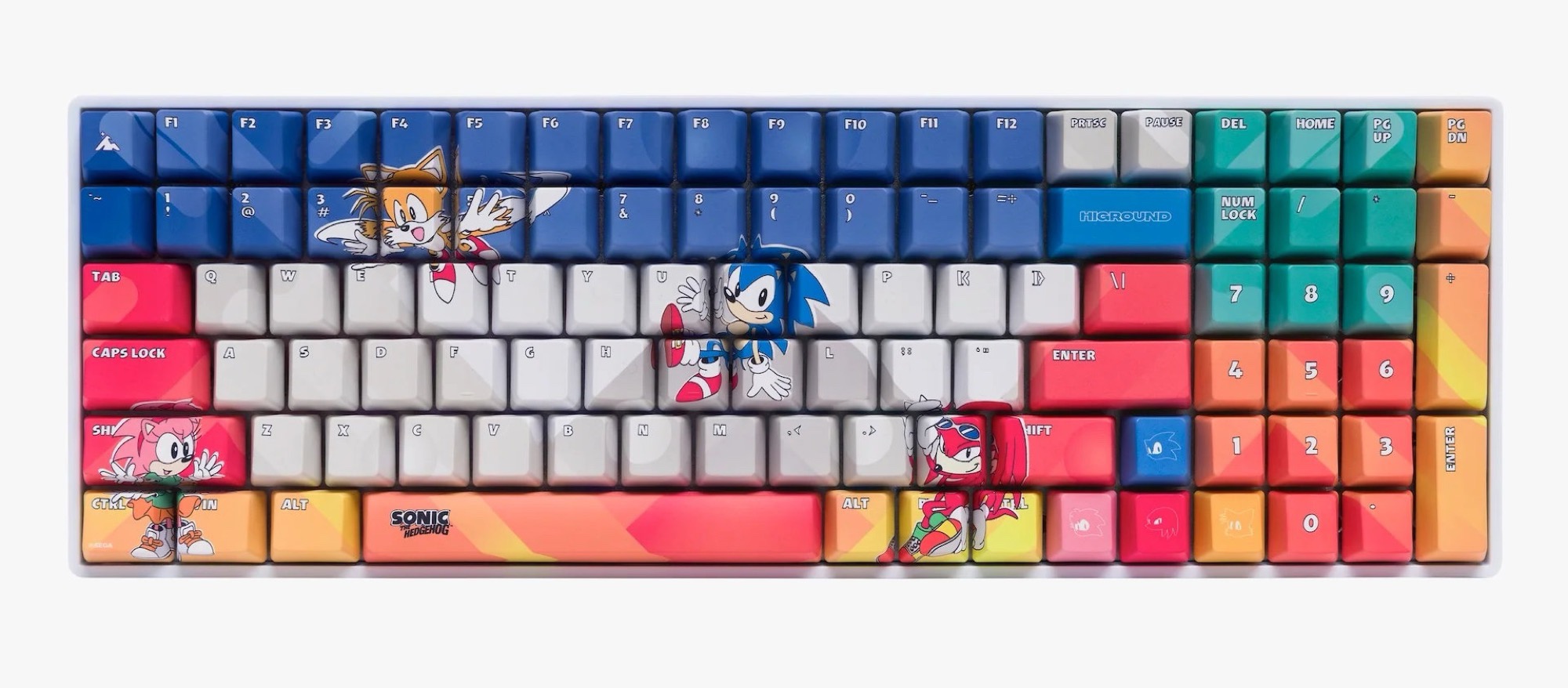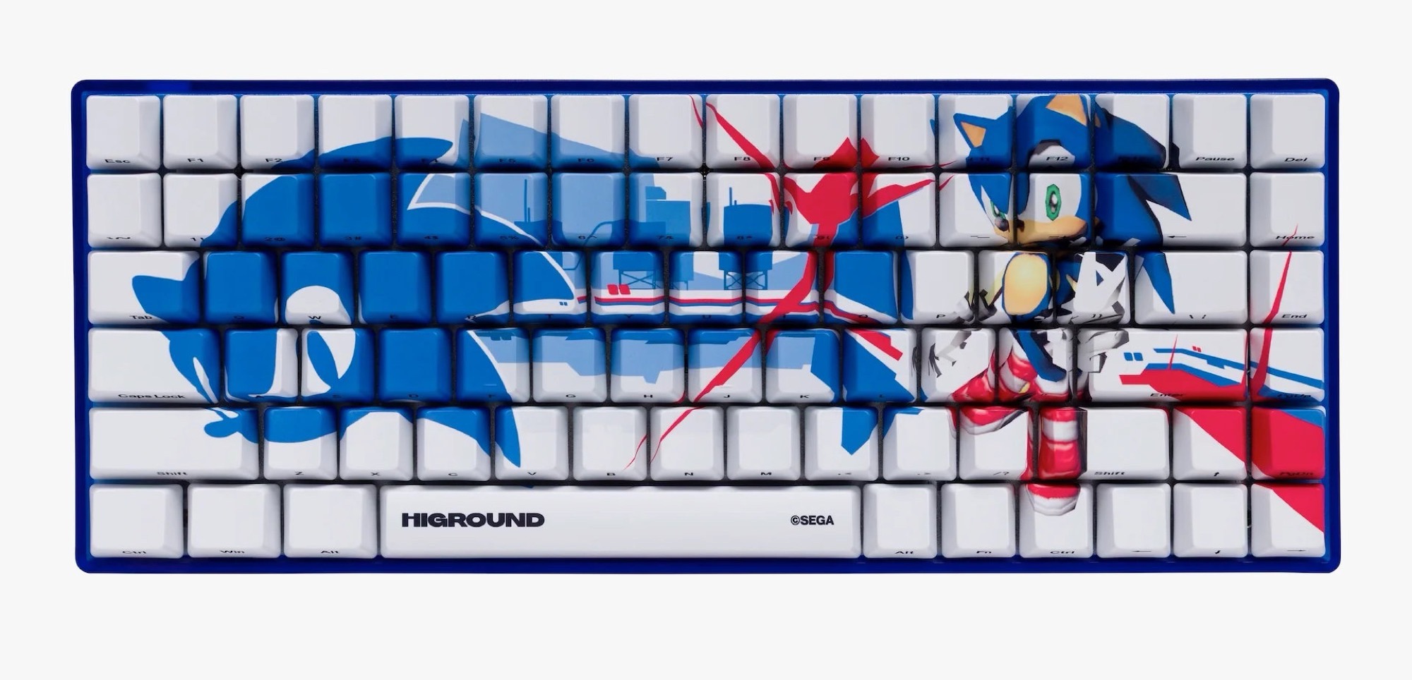 Die neueste Tastatur-Kollektion von Higround umfasst vier unterschiedliche Tastaturen und insgesamt fünf verschiedene Designs. Die Sammlung umfasst zwei besonders schlichte Designs – eines mit blauen Tasten, Sonic CD Aufdruck und 75 Prozent Layout, also ohne Ziffernblock, aber mit Funktionstasten, und eines mit teilweise schwarzen, teilweise roten Tasten sowie Shadow the Hedgehog Print.
