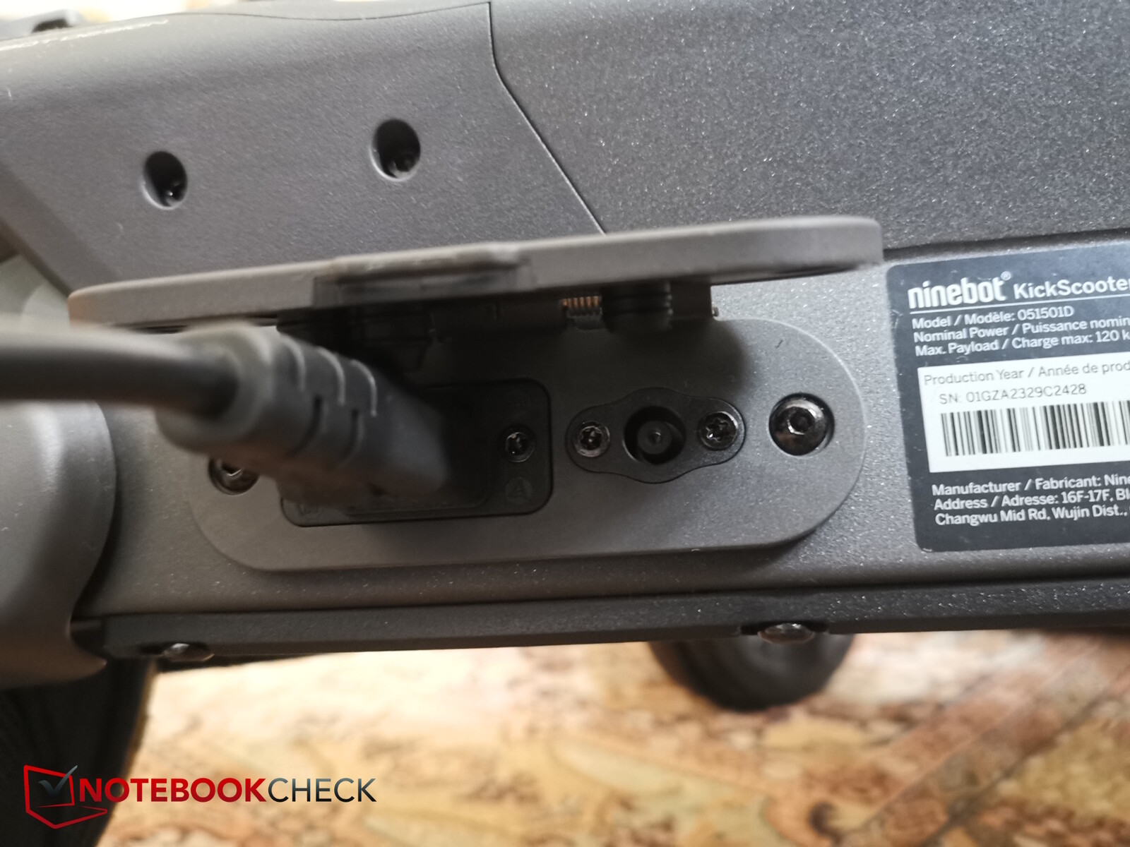 Der Akku fasst 551 Wh und kann über gleich zwei verschiedene Buchsen geladen werden. Ninebot liefert ein 230-V-Kabel mit, hierüber soll der Roller bis zu 2 A vertragen. Die zweite Buchse nimmt einen 42-V-Rundstecker auf und verträgt bis zu 5 A.