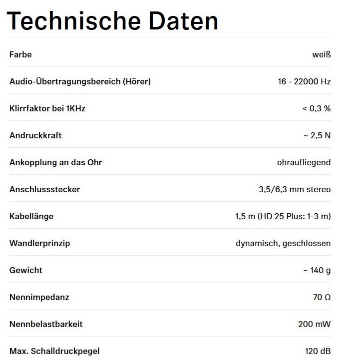 Der HD 25 Robin Schulz Edition sorgt mit dem charakteristischen Spreizkopfbügel für einen sicheren Sitz. Der Kopfhörer besitzt eine schwenkbare Ohrmuschel für das Monitoring mit einem Ohr. Leichte Aluminiumspulen sorgen für eine exzellente Impulswiedergabe. Der HD 25 bietet einen Frequenzgang von 16 bis 22.000 Hz, eine Impedanz von 70 Ohm und einen Grenzschalldruckpegel von 120 dB für das Sondermodell.Dem HD 25 liegt ein Klinkenadapter (3,5 mm auf 6,3 mm) für das einseitig geführte, 1,5 m lange Stahladerkabel bei.
