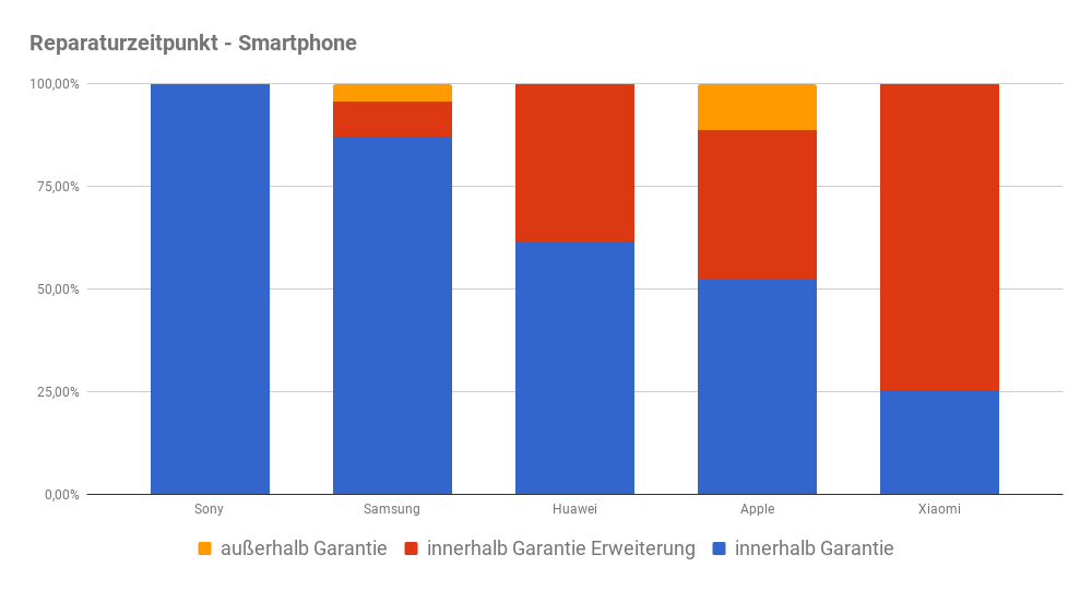 Neben Smartphone-Kunden von Huawei und Apple entscheiden sich offenbar auch viele Xiaomi-Käufer für eine Verlängerung der Garantie. So gaben rund 75 % der Teilnehmer an, bei ihrem Xiaomi-Phone innerhalb einer Garantieerweiterung einen Defekt mit folgender Reparatur gehabt zu haben.