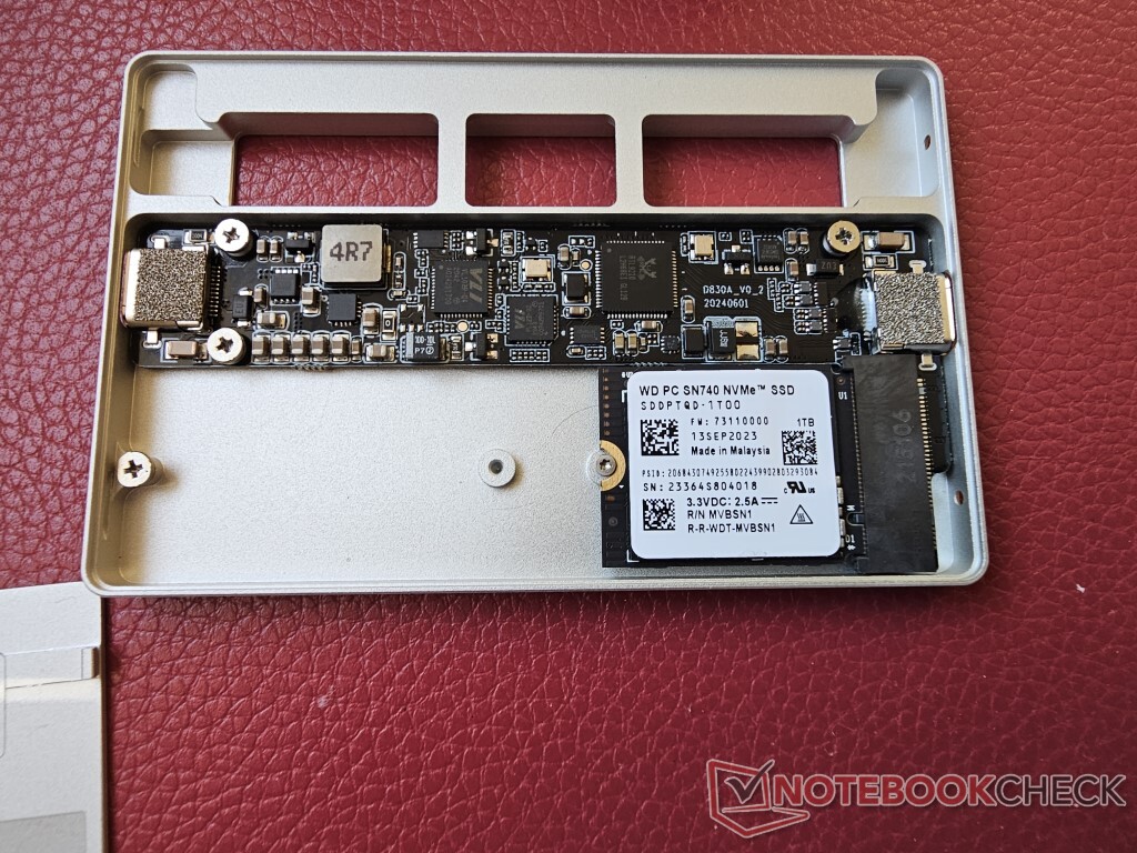 Die im Paket dieses Testers enthaltene SSD scheint eine WD SN740 im 2230-Formfaktor zu sein.