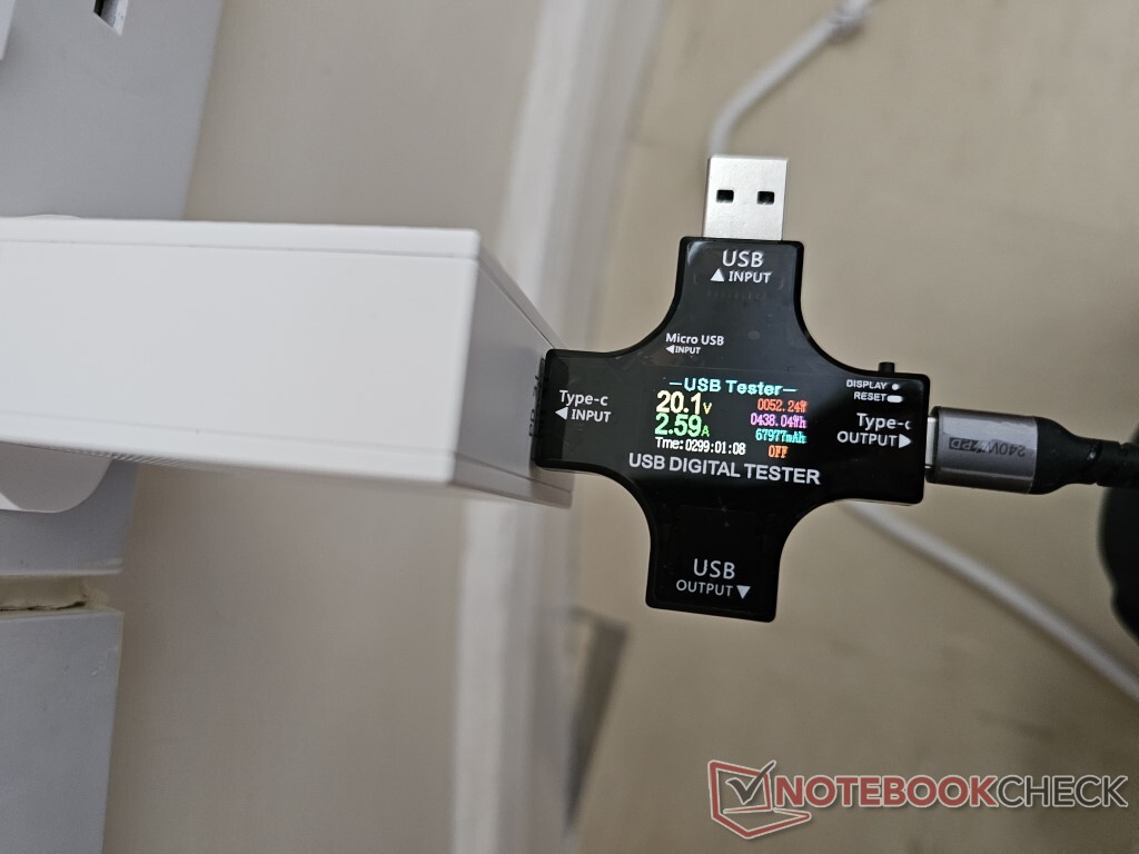 Man kann auch bestätigen, dass sie als Durchgangsladegerät mit einer Leistung von bis zu 50 W funktioniert, was praktisch ist, wenn man mitten in einer Handheld-Spielesitzung aufladen muss (auch wenn man den Titel beenden und dann im echten Leben neu starten muss).