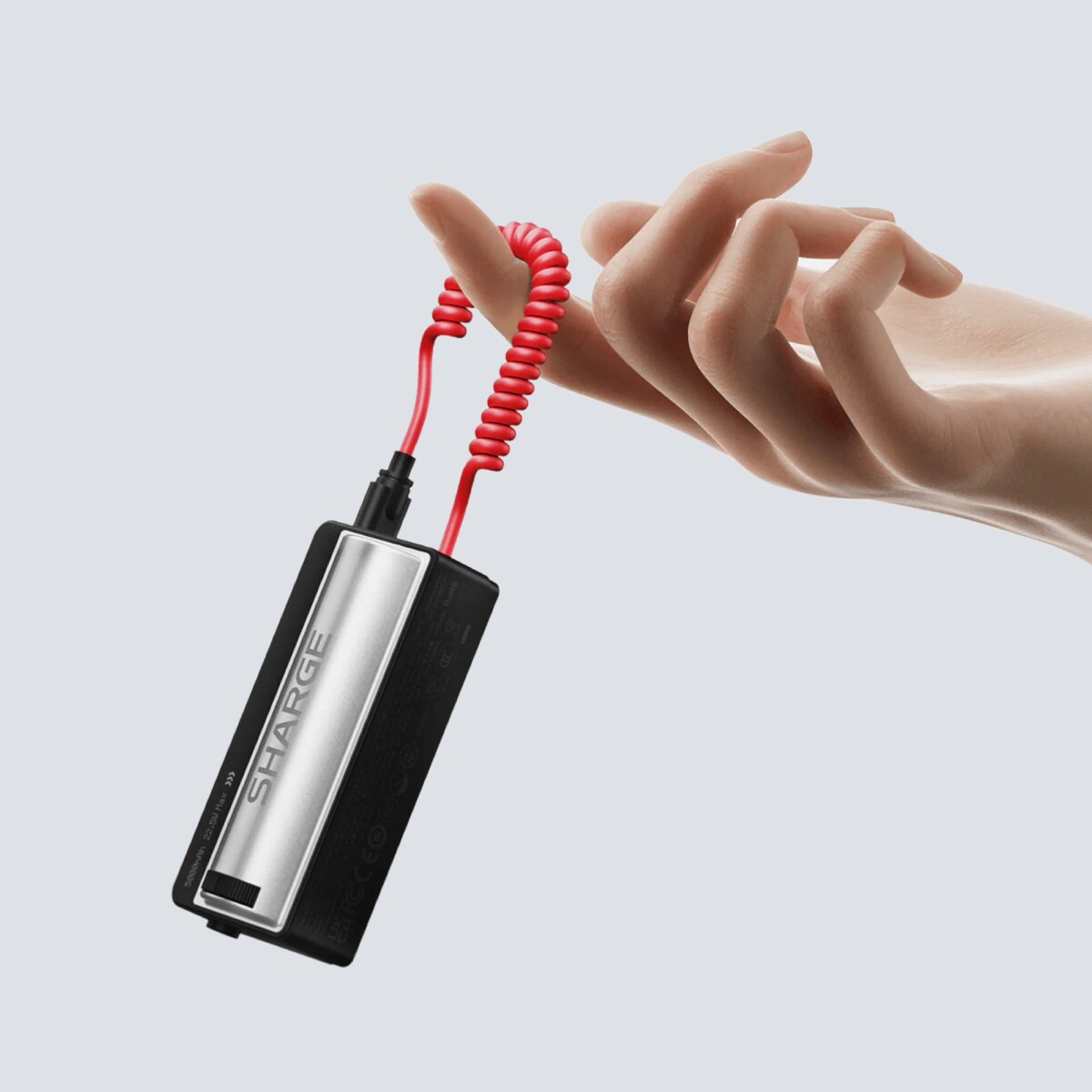 Der USB-C-Port an der Unterseite erlaubt es, die Power Bank mit bis zu 18 Watt aufzuladen, oder aber ein zweites Kabel zu verbinden, um zwei Geräte zeitgleich aufzuladen. Wird ein einzelnes Gerät angesteckt, wird dieses mit bis zu 22,5 Watt geladen, bei zwei Geräten sinkt die Leistung auf bis zu 15 Watt. Sharge bewirbt einen Wirkungsgrad von mindestens 70 Prozent. Die Power Bank wiegt 120 Gramm. Mit Maßen von 8,8 x 3,8 x 3 Zentimetern soll die Power Bank bequem in die Hosentasche passen.