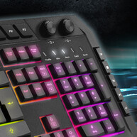 Die Skiller SGK5 von Sharkoon verfügt über eine RGB-Hintergrundbeleuchtung, die sich in 6 Zonen und 16,8 Millionen Farben beleuchten lässt. Viele günstige Rubber-Dome-Tastaturen erkennen maximal zwei Tastenanschläge gleichzeitig (2-Key-Rollover). Die Sharkoon Skiller SGK5 besitzt ein N-Key-Rollover und erkennt somit beliebig viele Tasten beim Drücken.