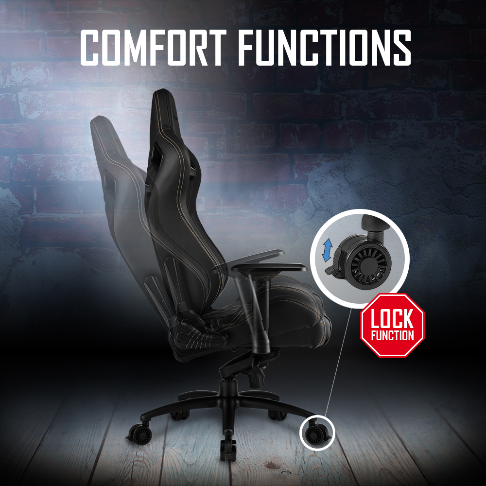 Bequemen Sitzkomfort verspricht eine stützende Schaumstoffpolsterung mit einer Dichte von 70 kg/m³ an Sitzfläche und Rückenlehne. Die 4-Wege-Armlehnen sollen auch für Dauerhocker eine ergonomische Sitzhaltung fördern. Armlänge, Höhe und Breite sowie der horizontale Winkel lassen sich einstellen. Die federunterstützte Wippfunktion kann mittels Neigungswinkelverriegelung in mehreren Stufen von 0 bis 14 Grad arretiert werden. Die Rückenlehne des Skiller SGS5 ist in Winkeln von 90 bis 160 Grad feststellbar.