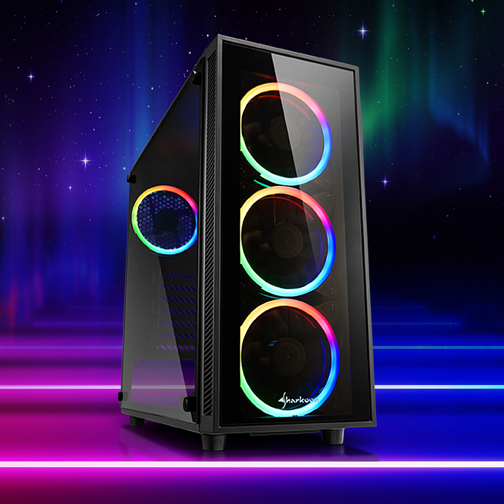 Mit dem Sharkoon Skiller SGC1 RGB ergänzt der Hersteller die gleichnamige Gehäusereihe um eine Version mit zwei adressierbaren, 120 Millimeter großen LED-Lüftern und einem Seitenteil aus gehärtetem Glas. Die bisher erhältlichen Modelle sind mit einfarbig beleuchteten Lüftern und einem Seitenfenster aus Acryl ausgestattet. Die neue Variante verfügt zusätzlich noch über eine 4-fach-RGB-Steuerung, die sich mit dem Mainboard verbinden lässt, um die Lichteffekte mit der restlichen Hardware zu synchronisieren. Ähnlich wie beim TG4 ist es aber auch möglich, die 14 Lichteffekte selbst über den Reset-Knopf anzuwählen oder die Illumination komplett abzuschalten.
