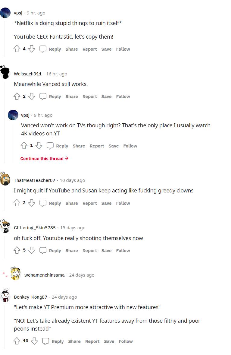 Bis auf die vereinzelten Meldungen von Nutzern, zuletzt etwa auch von @agentmadara und @whatabttzu, liegen aktuell noch keine offiziellen Hinweise vor, ob Google die 4K-Auflösung künftig tatsächlich exklusiv für Youtube-Premium-User freischalten will. Der Shitstorm, der anfangs auf Reddit beschränkt war, zieht nun aber weitere Kreise, nachdem gut vernetzte Twitter-User auf den potentiellen Test dieses "neuen Features" aufmerksam gemacht hatten. Unten ein paar der Reaktionen auf Twitter und Reddit.