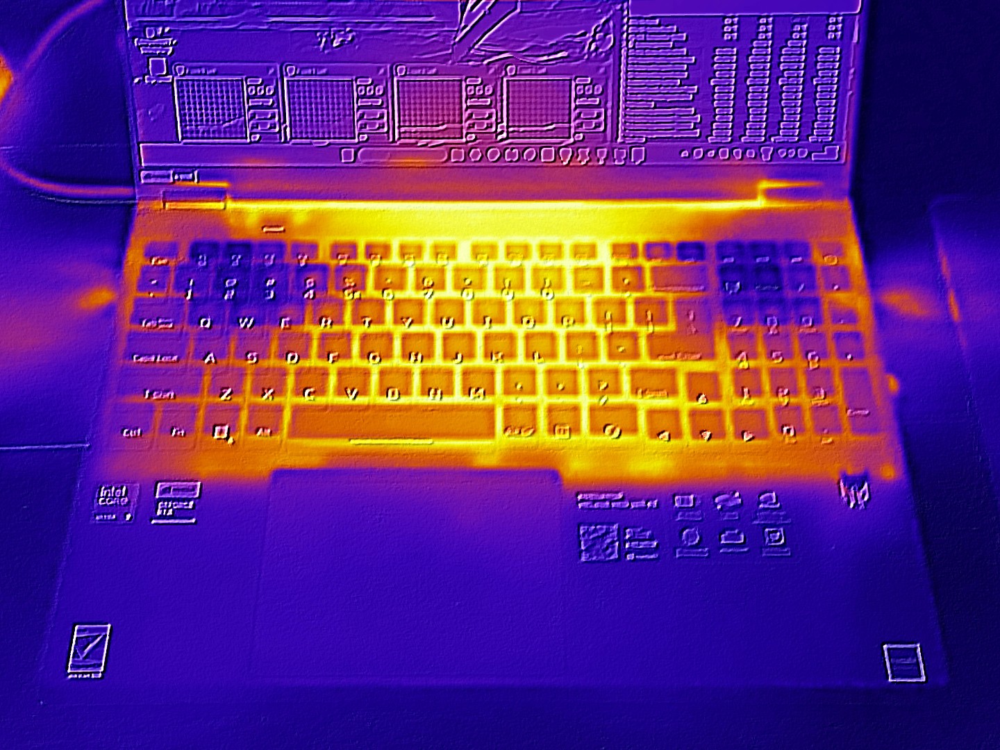 Ähnlich sieht das Fazit zur Temperaturentwicklung aus. Solange das Notebook nichts zu tun hat, bleiben die Oberflächen erfreulich kühl und verweilen unter der 30-°C-Marke. Im 3D-Betrieb erreicht vor allem der Gehäuseboden weitaus höhere Werte: Maximal 55 °C sprechen gegen Gaming-Sessions auf dem Schoß. Die Temperatur der Oberseite fällt mit maximal 47 °C moderater aus.