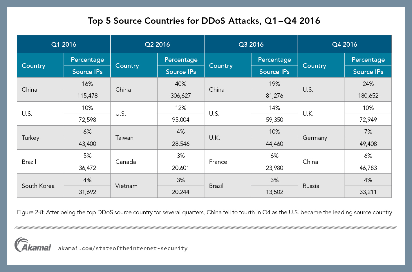 Hier die wichtigsten Ergebnisse des Akamai-Berichts zur Internet-Sicherheit in Q4/2016 in der Zusammenfassung: