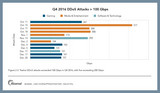 - Der mit 517 Gbit/s umfassendste DDoS-Angriff im vierten Quartal 2016 wurde mittels Spike ausgeführt, einem Botnet, das bereits seit mehr als zwei Jahren besteht; es greift jedoch nicht auf IoT-Geräte zurück.