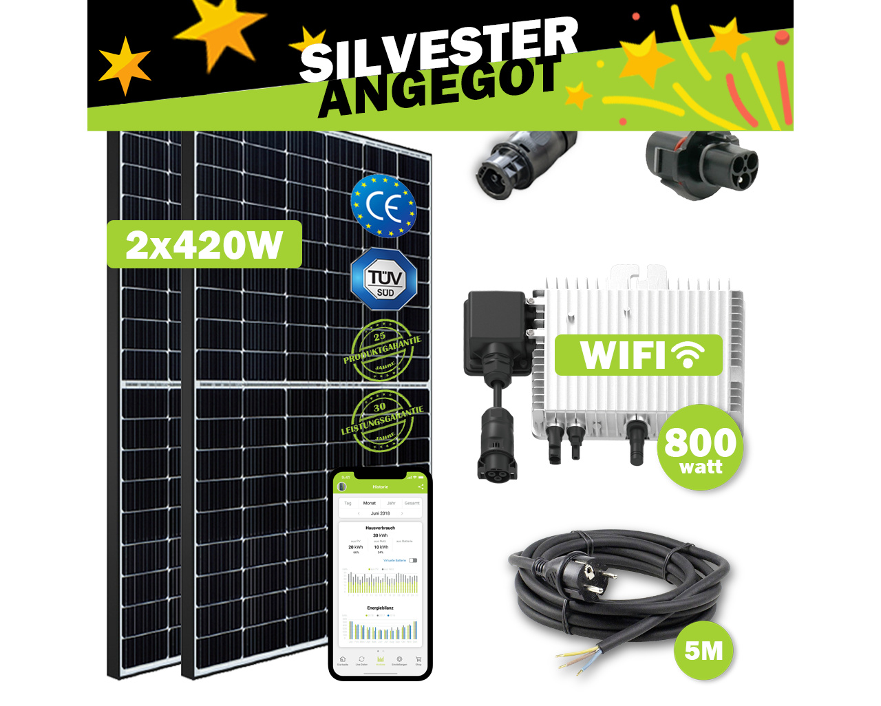 Im Lieferumfang sind zwei bifaziale Glas-Glas-Module von Ja Solar mit jeweils 420 Wp enthalten. Diese Art von Solarpanels kann höhere Stromerträge liefern, da sie sowohl von der Vorderseite als auch der Rückseite Strom erzeugen können. Zudem bietet die Doppelverglasung einen höheren Schutz vor Verunreinigungen, die die Leistung von Solarmodulen beeinträchtigen können.