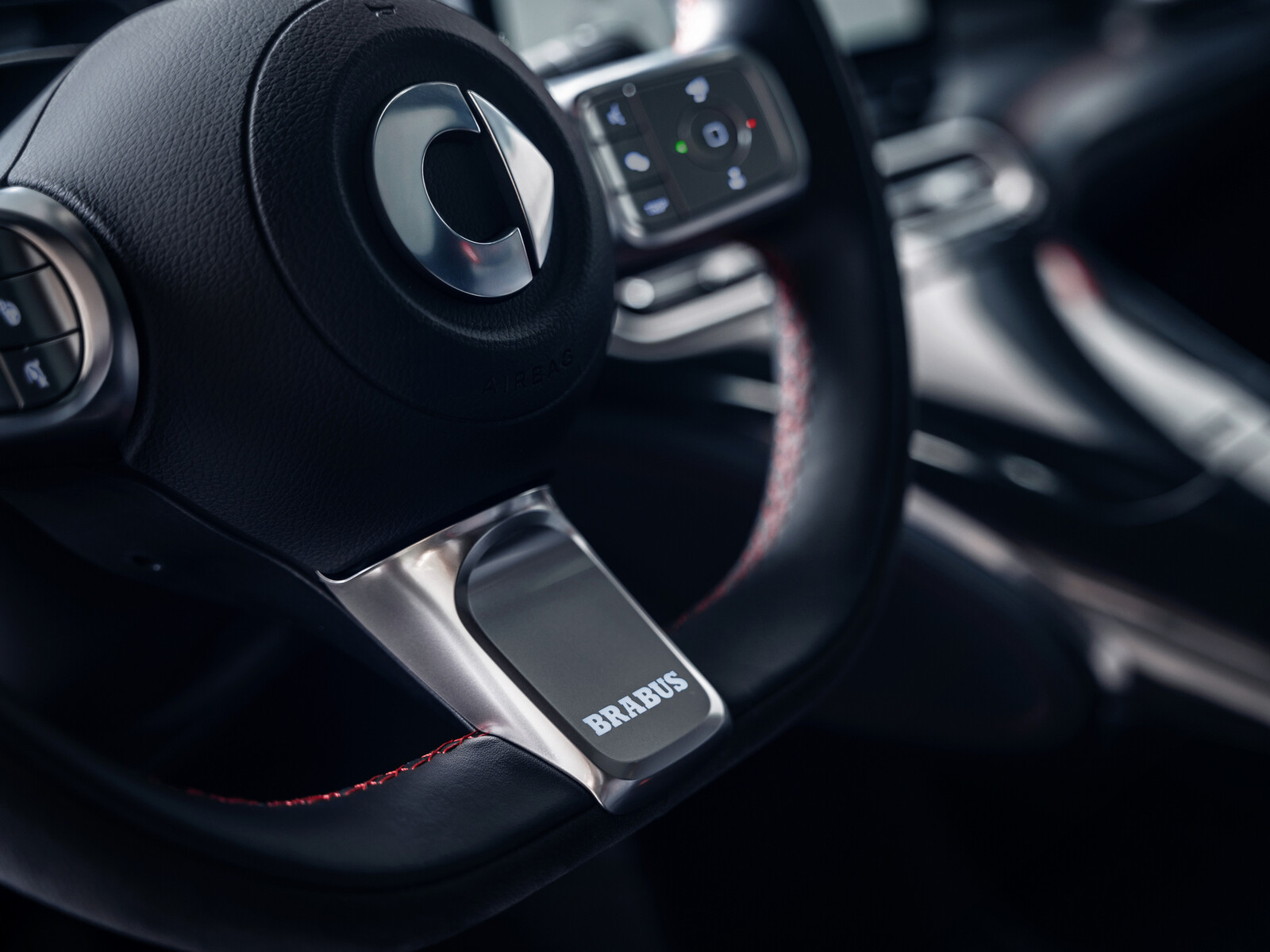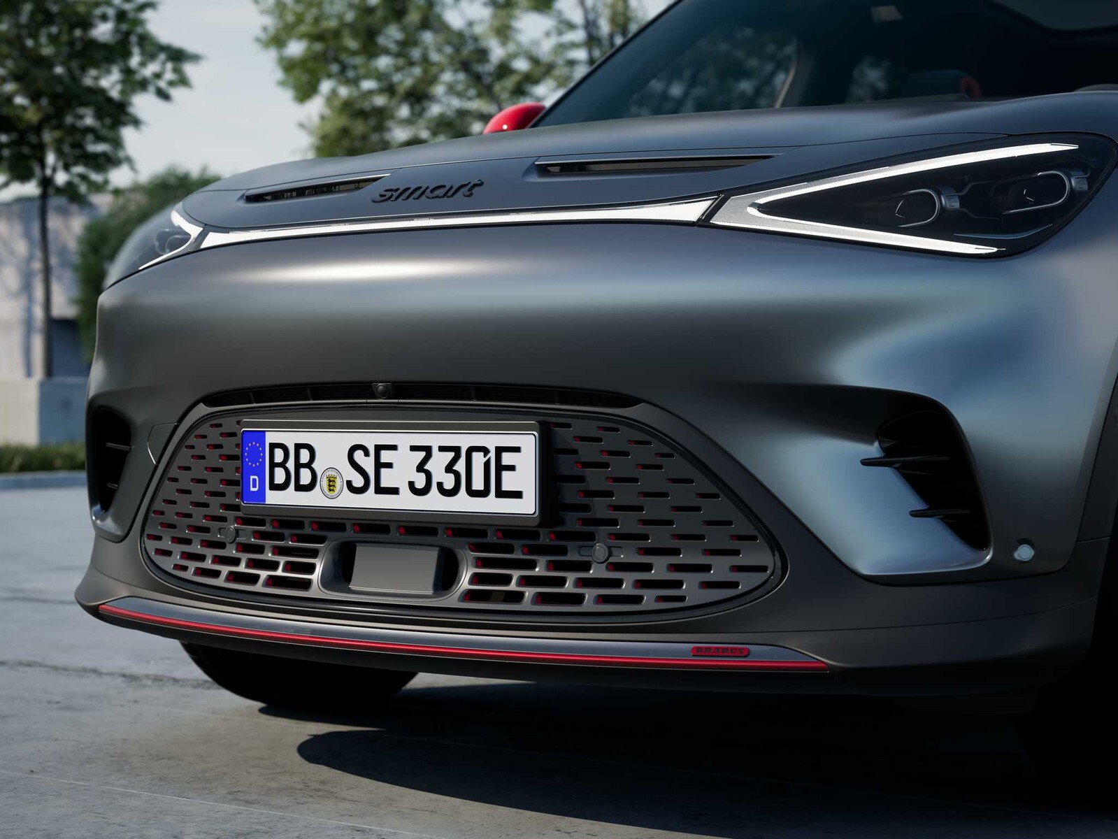 Beim Smart #1 Brabus gibt es dann mit 315 kW (428 PS) Leistung satt und anstatt Hinterrad- einen Allradantrieb. Das Drehmoment von 343 Nm der Serie übertrifft der Smart #1 Brabus mit 543 Nm locker, den Sprint von 0 bis 100 km/h schafft der Brabus-Smart in 3,9 s. Bei den Beschleunigungswerten liegt der Smart #1 Brabus damit praktisch gleichauf mit dem Porsche Taycan 4S (390 kW, 530 PS) und schneller als die auf Reichweite getrimmte Version des Tesla Model 3 (4,4 s).