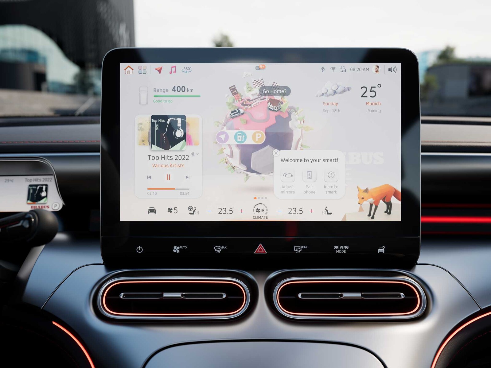 Smart nennt für den Hashtag 1 eine Spitzenleistung von 200 kW (272 PS) und eine Höchstgeschwindigkeit von 180 km/h. Das AC-Aufladen von 10 bis 80 Prozent erledigt der Smart #1 bei 22 kW in 3 Stunden. Via DC-Superschnellladung soll der Smart #1 das in weniger als 30 Minuten schaffen. Die maximale WLTP-Reichweite beziffert Smart zwischen 420 und 440 km.