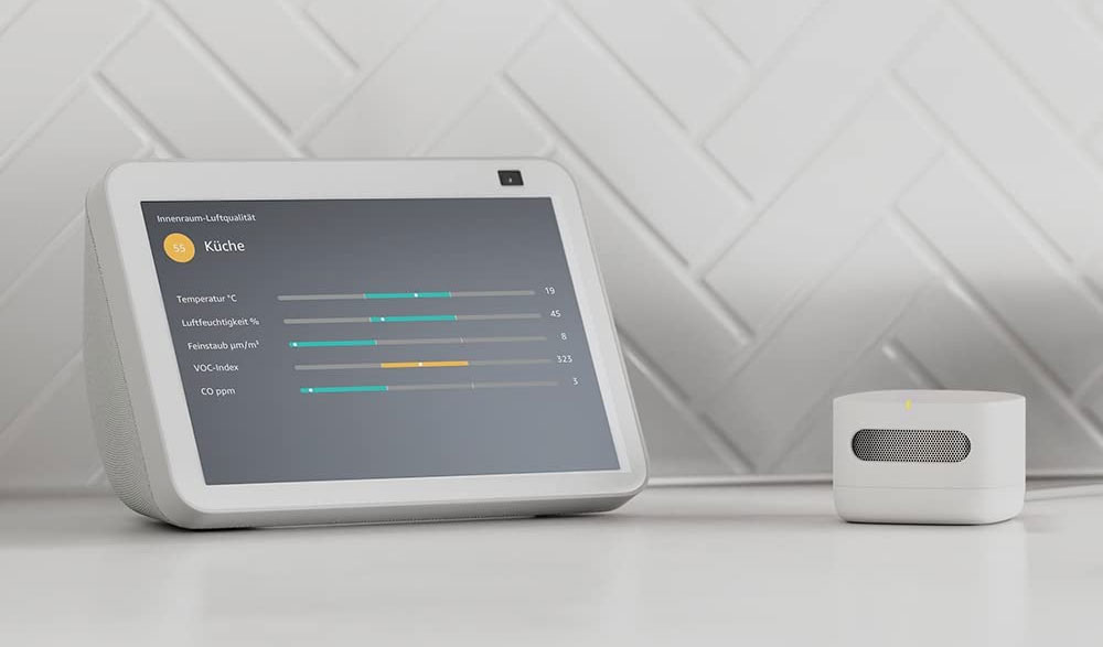 Die gemessenen Werte lassen sich dann über die Alexa App sowie die Echo Show Modelle (ab ca. 100 Euro bei Amazon) verständlich aufbereitet einsehen. Zudem kann Amazons Sprachassistentin auch nach der aktuellen Luftqualität gefragt werden. Benachrichtigungen, wenn bestimmte Grenzwerte überschritten wurden, sind ebenfalls möglich.