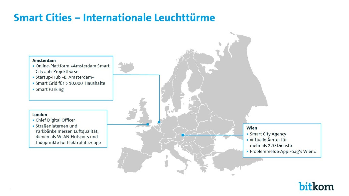 Der Smart City Index vermesse die deutschen Großstädte in puncto Digitalisierung und mache sie vergleichbar. Hamburg erreiche in allen fünf untersuchten Themenfeldern Spitzenwerte und sei damit ein Vorbild für viele Smart-City-Initiativen in Deutschland, so der Bitkom. Gesamtspitzenreiter Hamburg führt auch die Teilrankings in den Themen Energie und Umwelt (61,4 Punkte) und Gesellschaft (89,3) an.