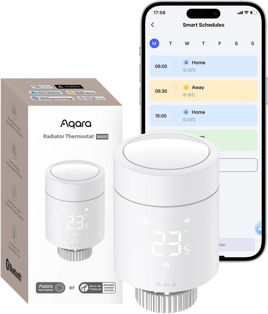 Das neue Aqara Heizkörperthermostat W600 kann dabei helfen, Heizkosten zu sparen und zeitgleich für wohlige Wärme zu sorgen. Es steuert die Heizung auf smarte Weise und stellt so sicher, dass diese nur bei Bedarf aktiv ist. Unter anderem lassen sich über das W600 die Heizkörper in jedem Raum zielgerichtet nach Zeitplänen oder bedingten Auslösern wie Bewegung oder Geofencing automatisieren.