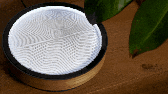 Ein Zen-Garten dient mit der Entspannung. Das Prinzip der meditativ gezeichneten Muster übernimmt der Oasis Mini, kombiniert dies aber mit smarter Technologie. Das "Kinetic Art Canvas" kann aktuell bei Kickstarter zum Vorzugspreis geordert werden.