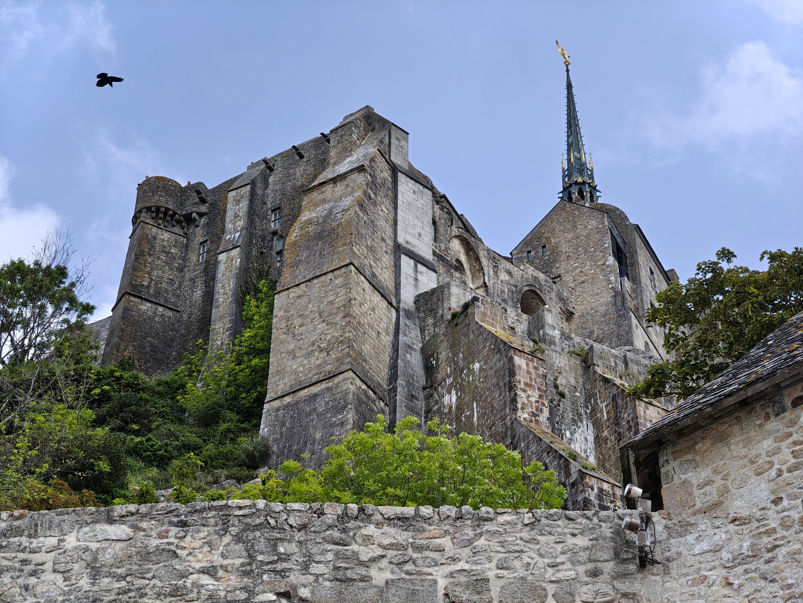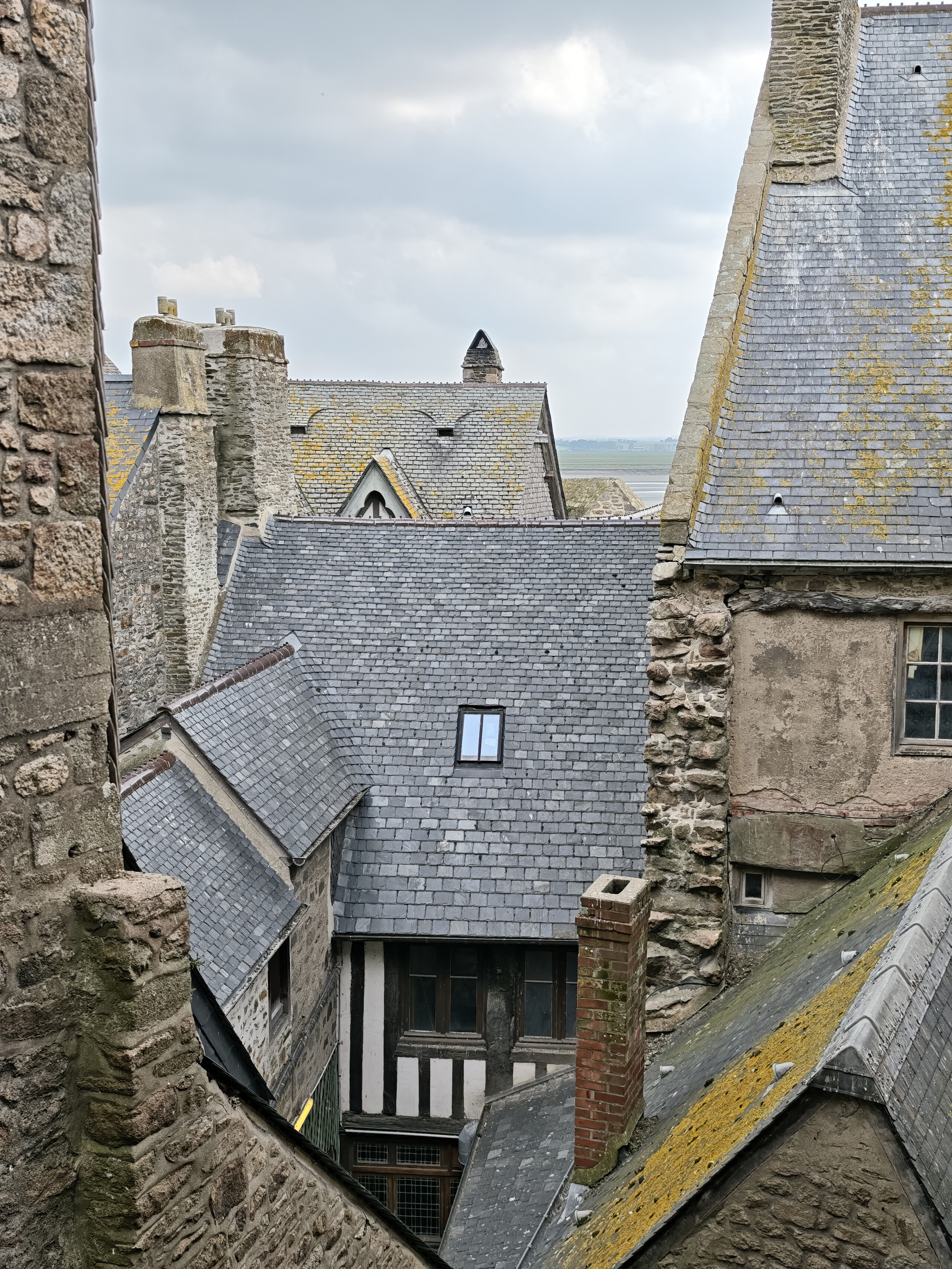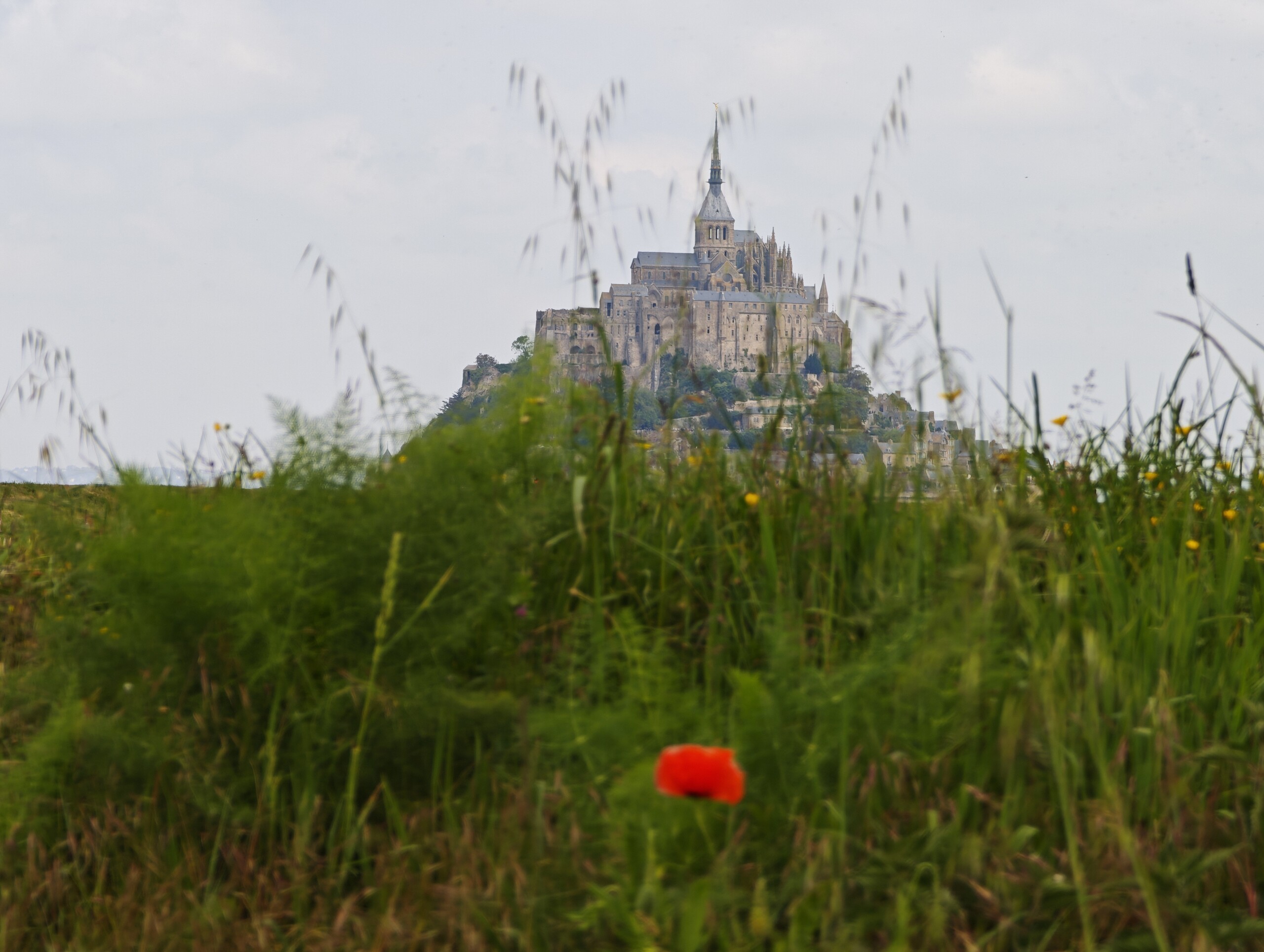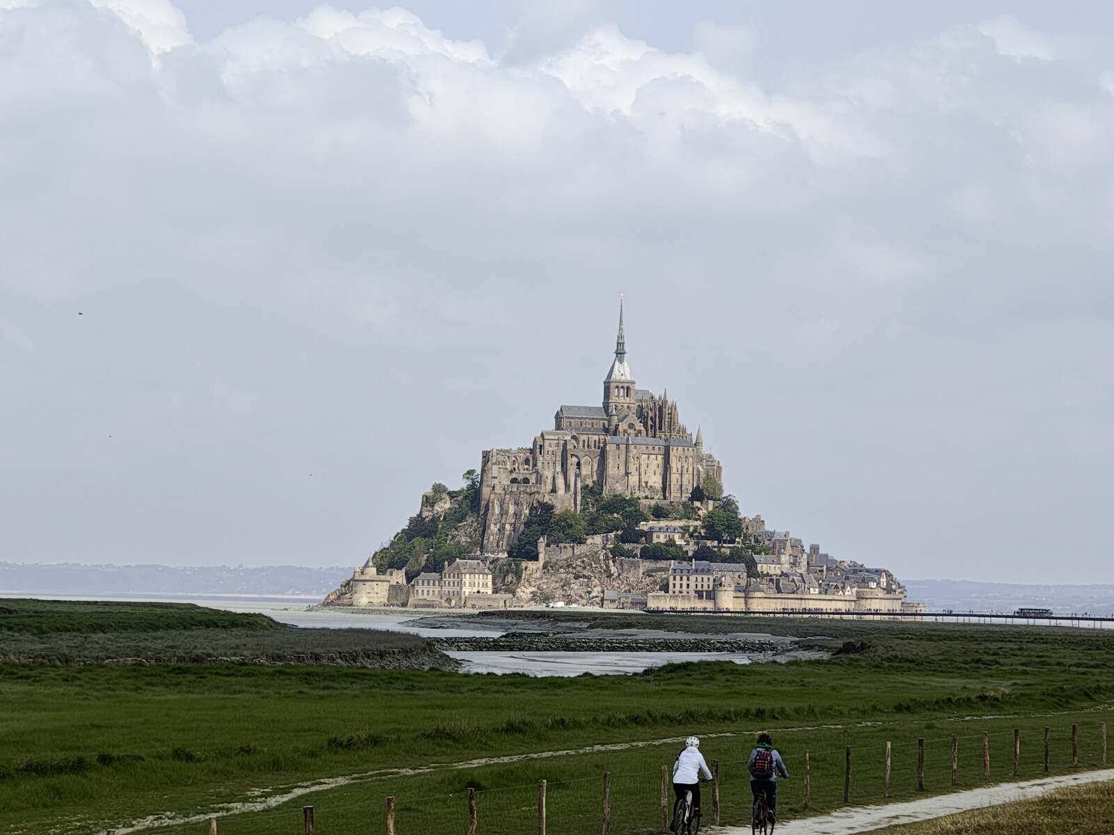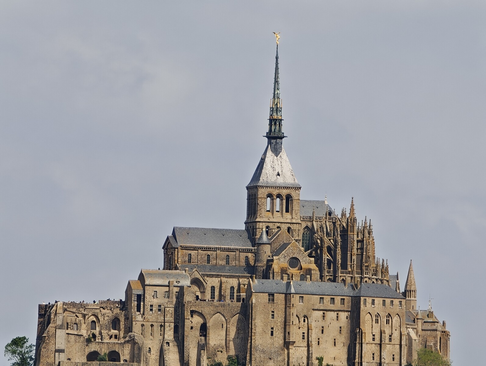 Nun, zunächst einmal ist da die spektakuläre Lage: Der mittelalterliche Ort liegt auf einem Felsen, etwa einen Kilometer vor der Küste der Normandie. Dieser befindet sich in einer Bucht mit einem Gezeitenunterschiede, welcher zu den größten der Welt gehört, sodass man bei Ebbe auch durch das Watt zum Berg gelangen kann – das sollte man allerdings nur mit einem erfahrenen Guide tun.