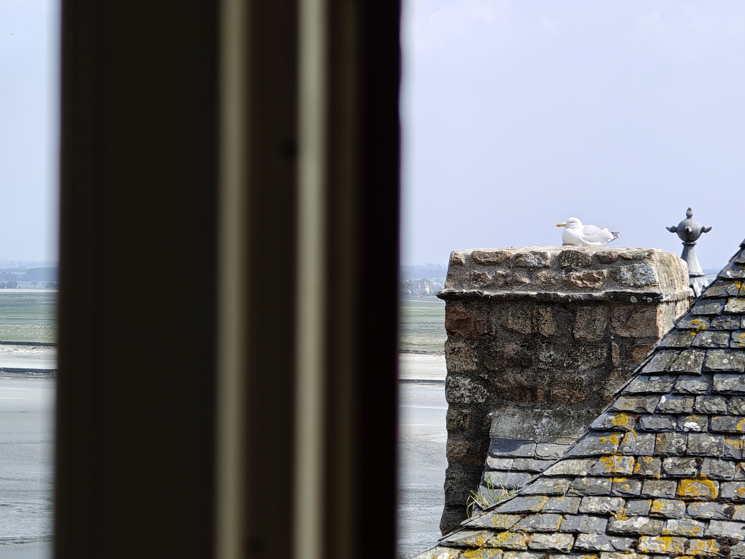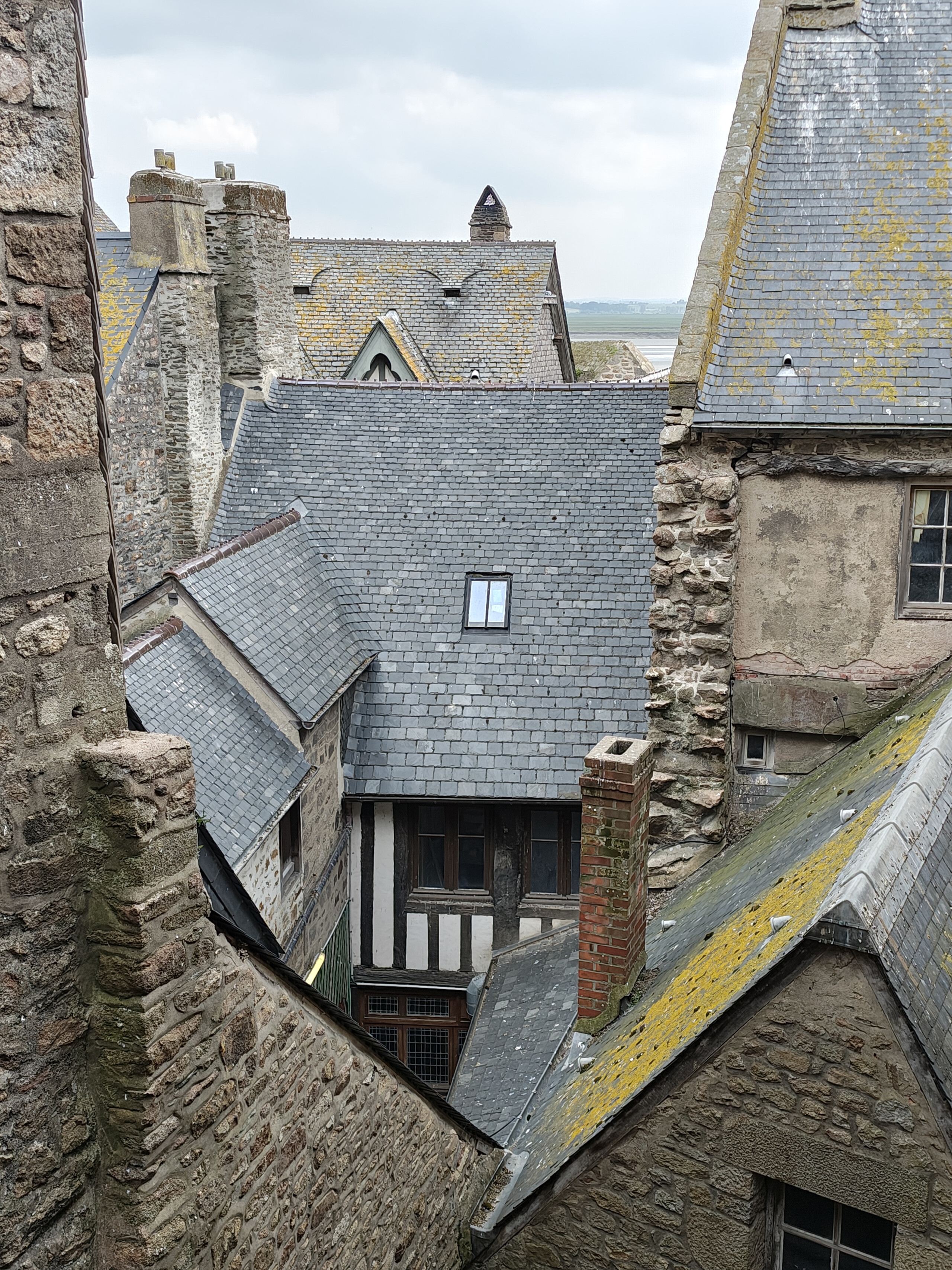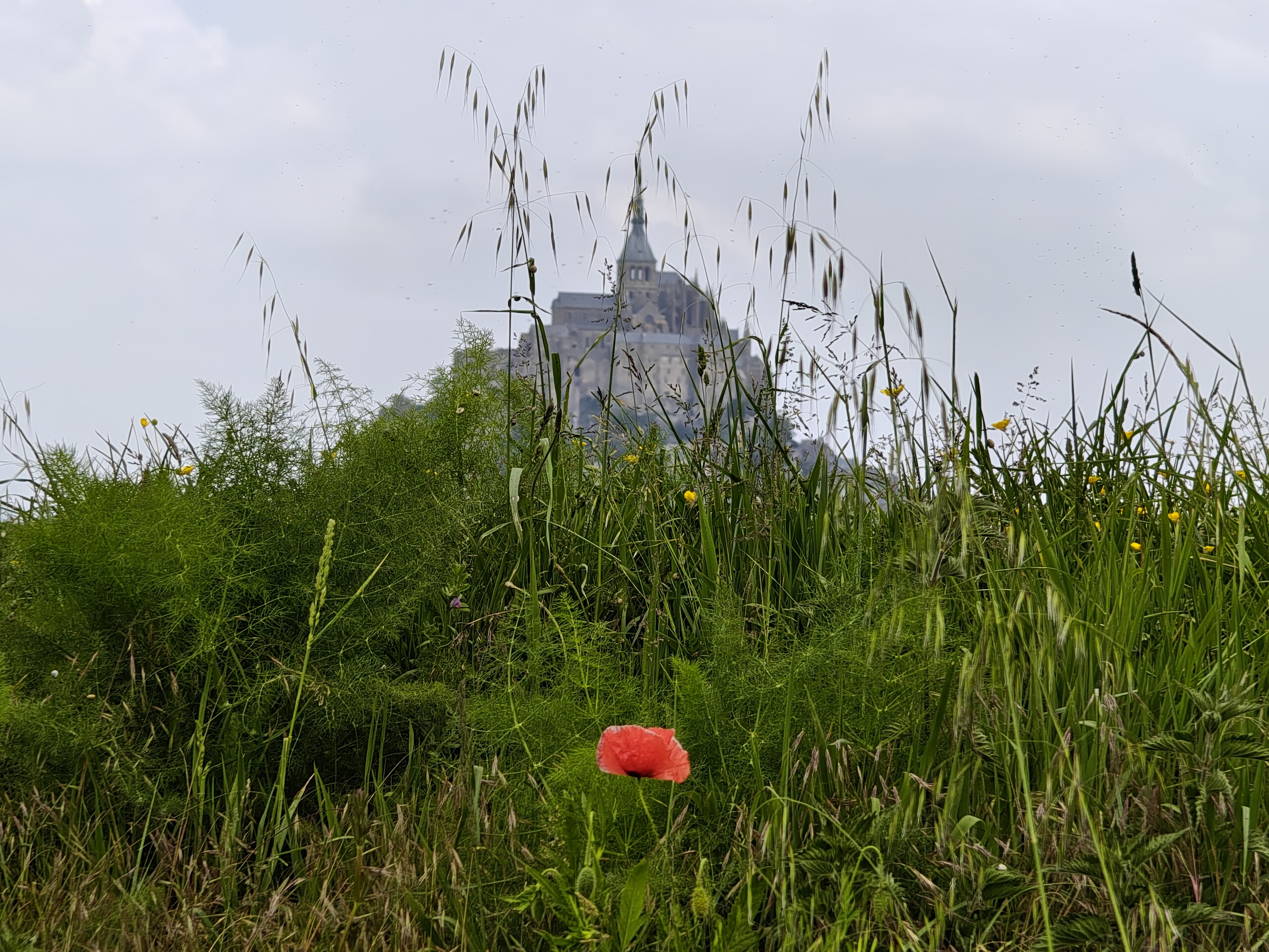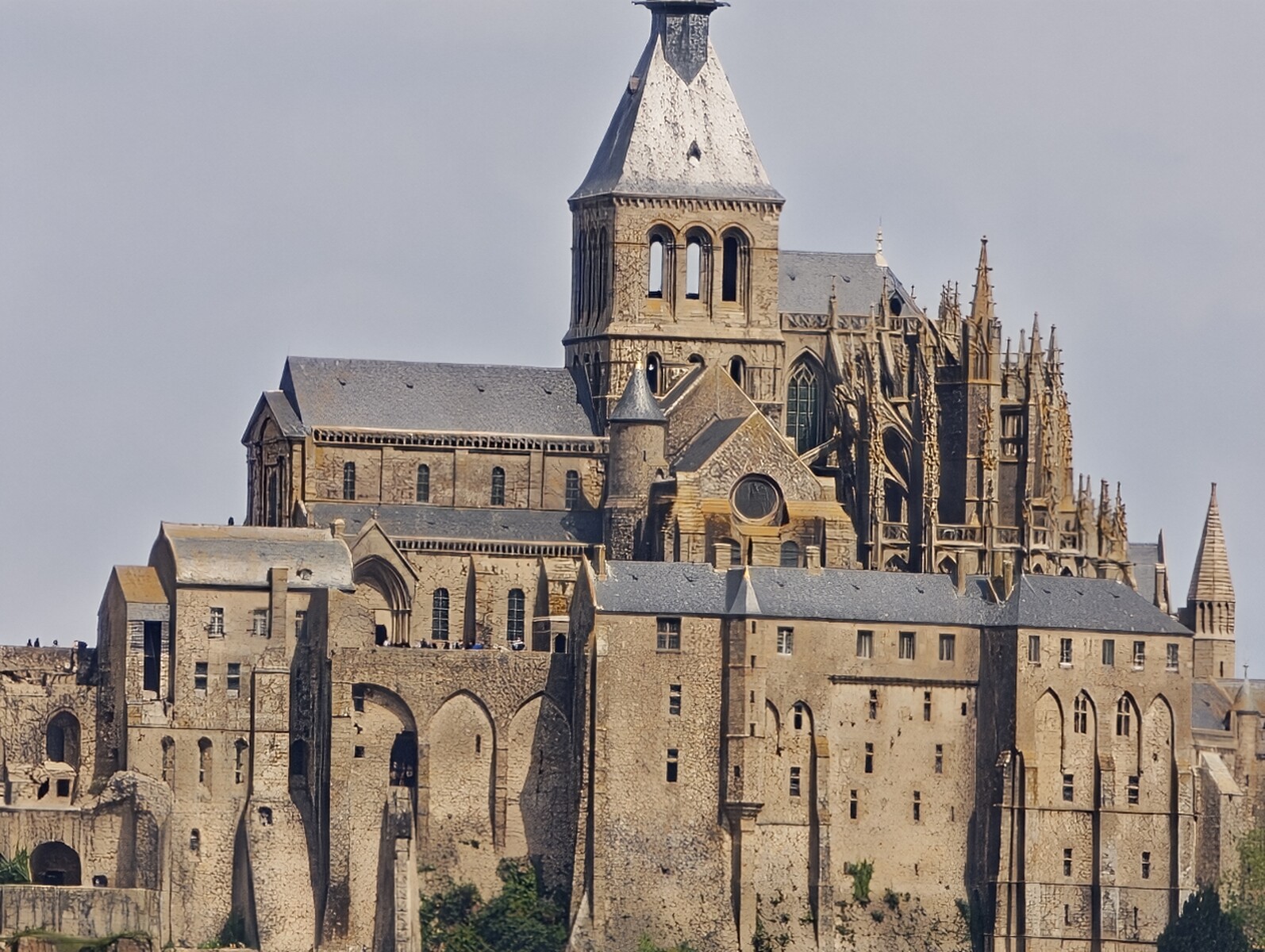 Nun, zunächst einmal ist da die spektakuläre Lage: Der mittelalterliche Ort liegt auf einem Felsen, etwa einen Kilometer vor der Küste der Normandie. Dieser befindet sich in einer Bucht mit einem Gezeitenunterschiede, welcher zu den größten der Welt gehört, sodass man bei Ebbe auch durch das Watt zum Berg gelangen kann – das sollte man allerdings nur mit einem erfahrenen Guide tun.