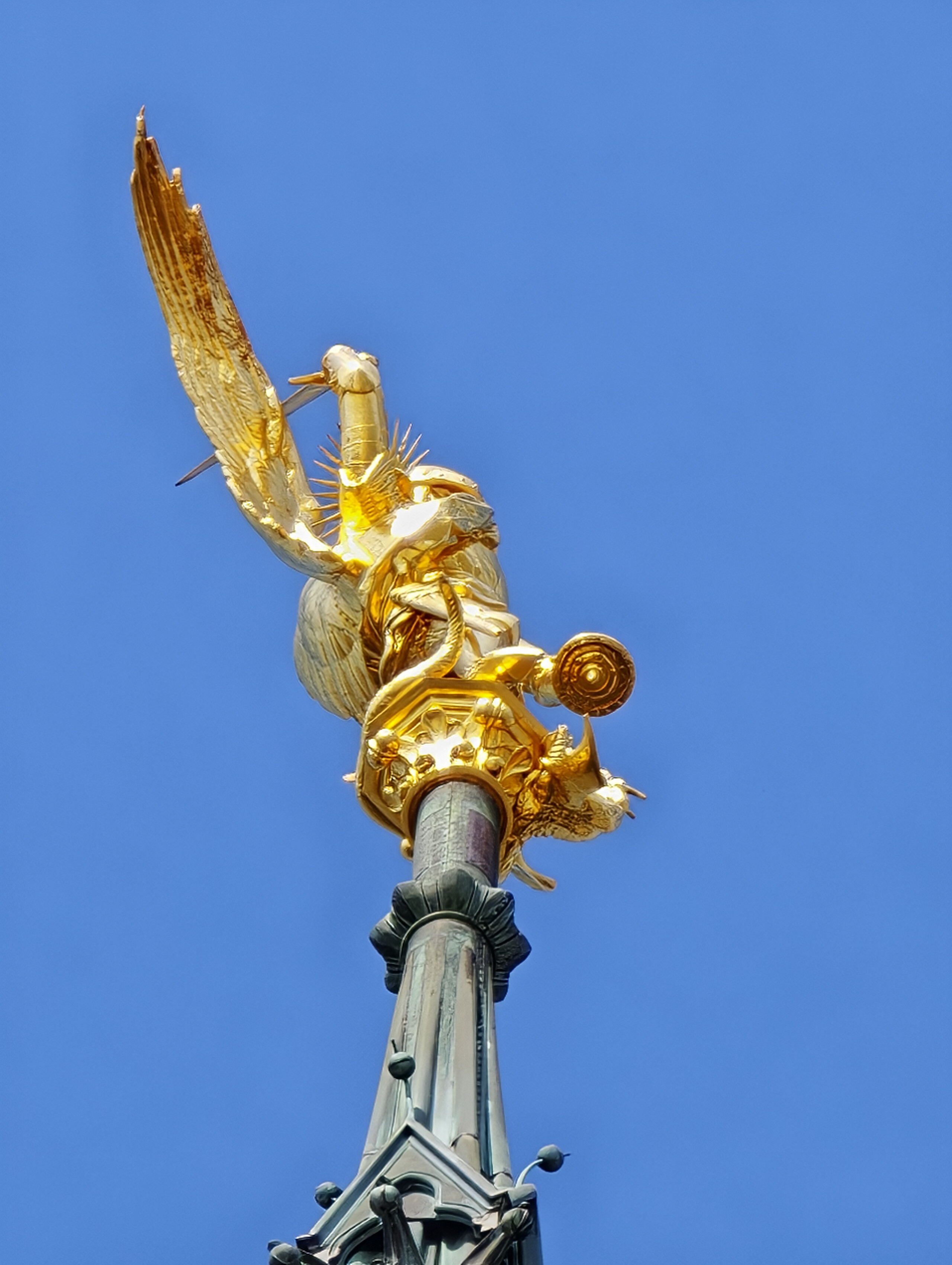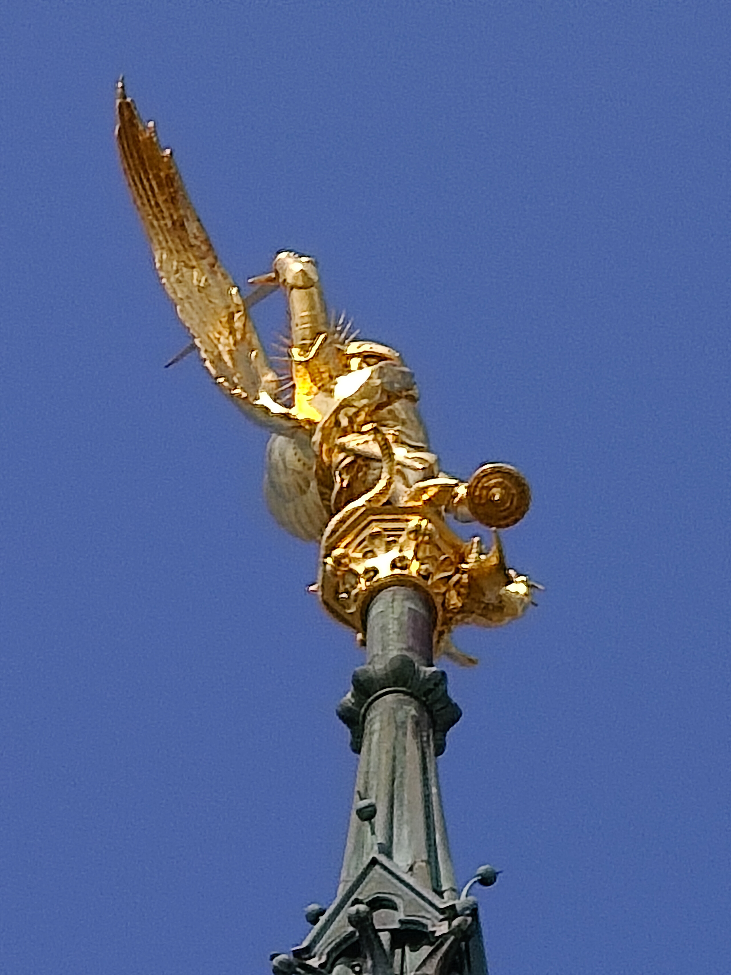 Wir halten das ganze in einem Video fest und zoomen am Ende noch auf die goldene Statue des Erzengels Michael, welche den Klosterturm krönt. Die Videoqualität beider Handys ist in 4K und 60 fps sehr gut: Die Bilder wirken klar und detailreich.