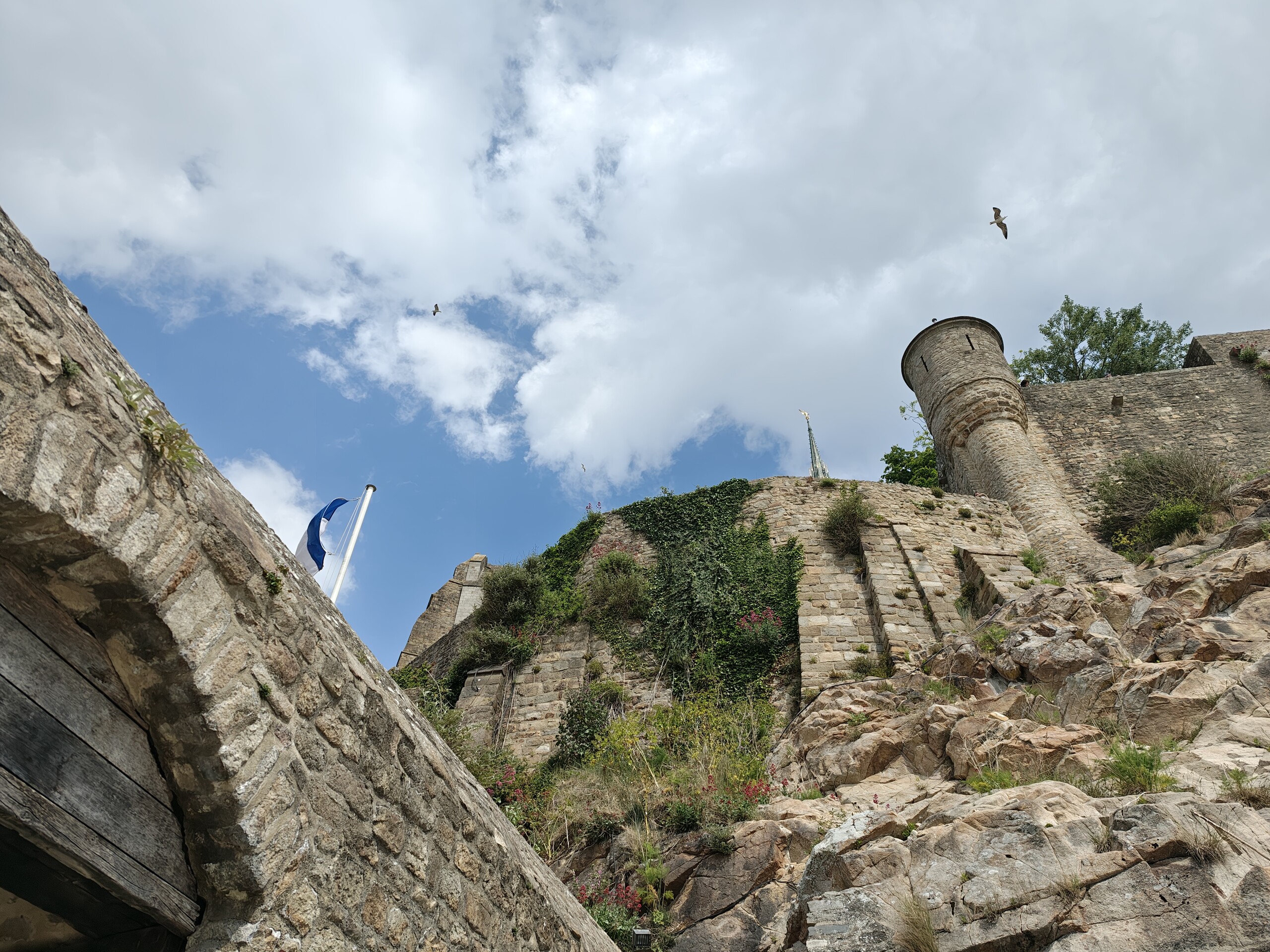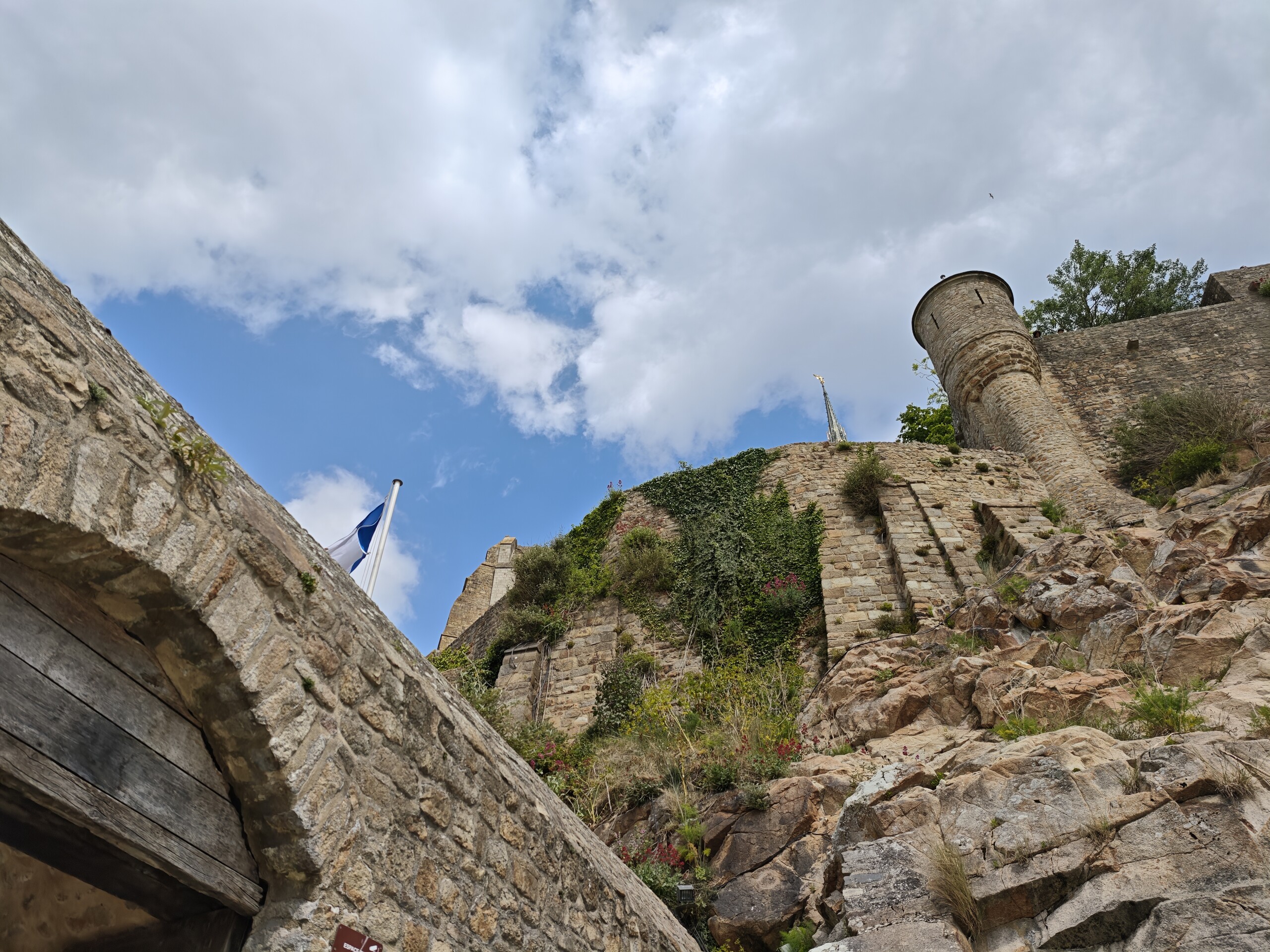 Entlang der mächtigen Stadtmauer laufen wir durch das von zahlreichen Touristen festgetretene Watt und klettern über Felsen. Beim Blick nach oben mit beiden Kameras zeigt sich wieder, dass die Bildschärfe des Xiaomi 15 Ultra deutlich überlegen ist.
