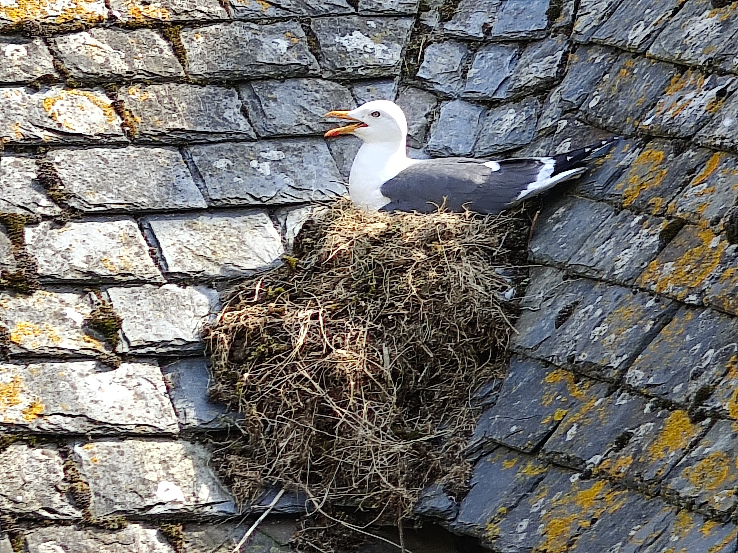 Die Möwen haben den heiligen Berg fest im Griff: Sie nisten auf den Dächern, beäugen die Touristen ganz genau und stehlen ihnen auch mal ihre Snacks, wenn sich die Gelegenheit bietet.