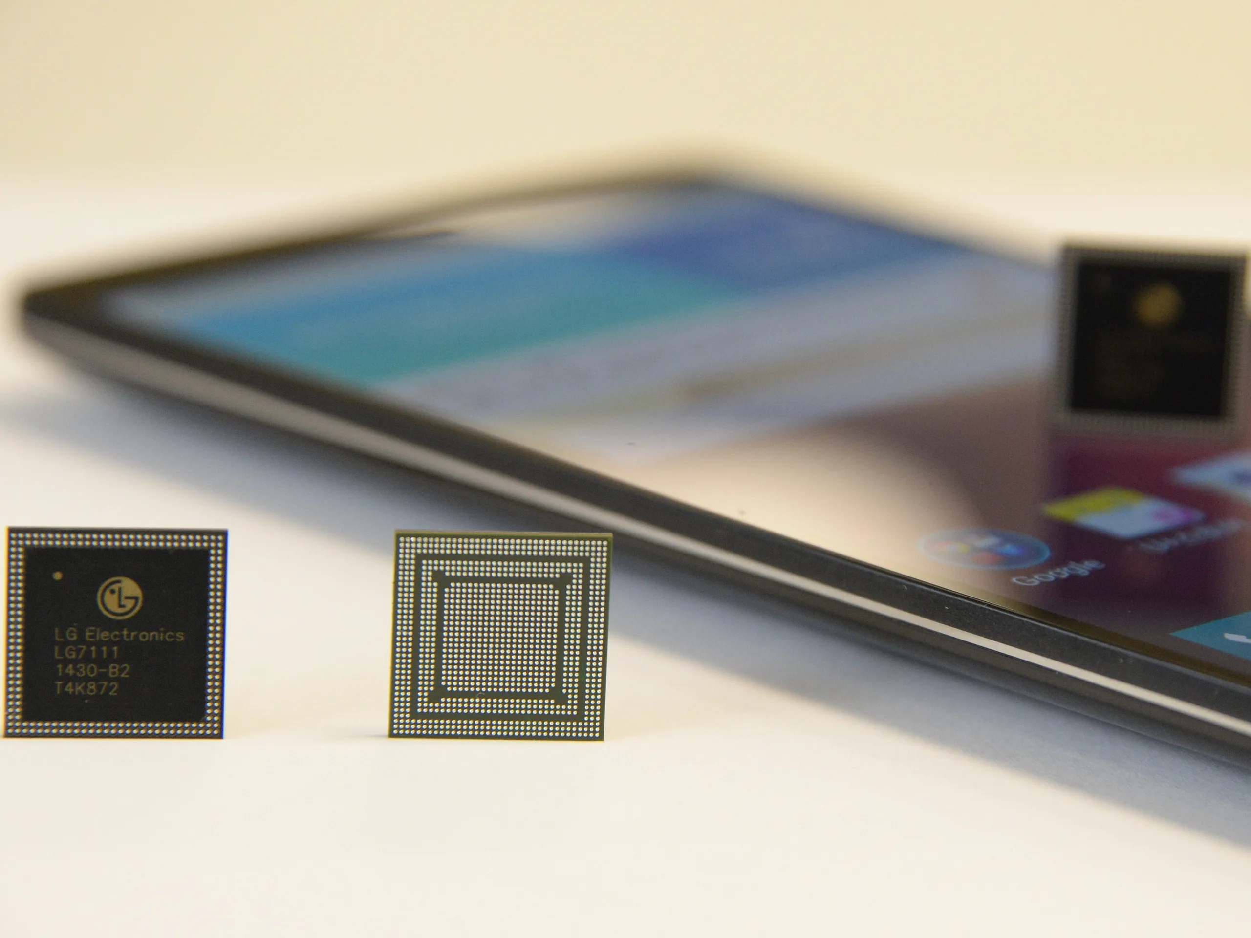 Der LG-Prozessor Nuclun besitzt 8 Rechenkerne: 4 schnellere ARM Cortex-A15 Cores @1,5 GHz und 4 langsamere ARM Cortex-A7 basierte Kerne mit 1,2 GHz für weniger intensive Rechenarbeit. Der Nuclun-Prozessor unterstützt die nächste Generation der 4G-Netze, LTE-A Cat.6 mit maximalen Downloadgeschwindigkeiten von bis zu 225 Mbps.Angaben zur integrierten Grafikeinheit machte LG nicht.