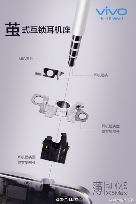 Doch nicht nur das mit 4,75 Millimetern geringfügig dünnere Gehäuse soll bei den Kunden Eindruck schinden. Im Gegensatz zum Oppo R5 verfügt das Vivo X5 Max tatsächlich über eine vollwertige Standardsoundbuchse im Format einer speziellen 3,5-mm-Klinkenbuchse. Wer am R5 von Oppo seine Earphones anstöpseln will, muss das mitgelieferte Audio-Adapterkabel (USB auf 3,5 mm) nutzen.