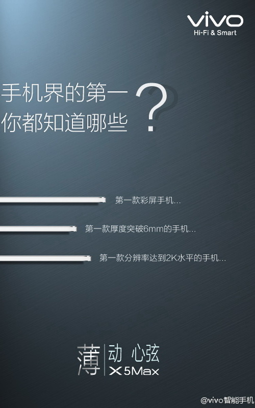 Vivo will kommenden Mittwoch, den 10. Dezember seinem Konkurrenten Oppo aus dem Heimatland China und dessen lediglich 4,85 Millimeter dünnen 5,2-Zoll-Smartphone Oppo R5 die Show bei den extrem flachen Smartphones stehlen. Die neue Wunderwaffe um die Gunst der Style bewussten Kundschaft: Vivo X5 Max.